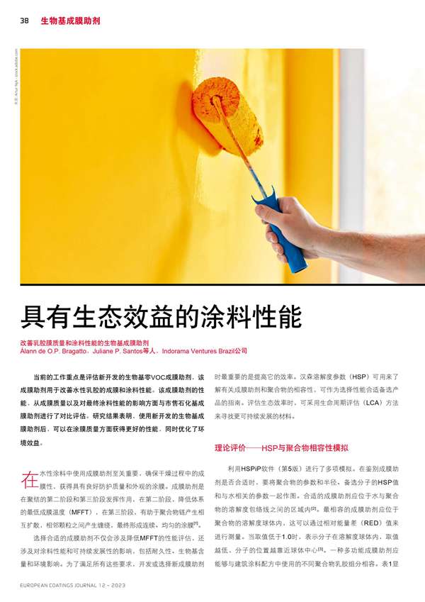 摘要:具有生態效益的涂料性能