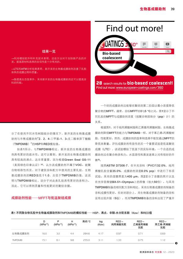 改善乳膠膜質量和涂料性能的生物基成膜助劑