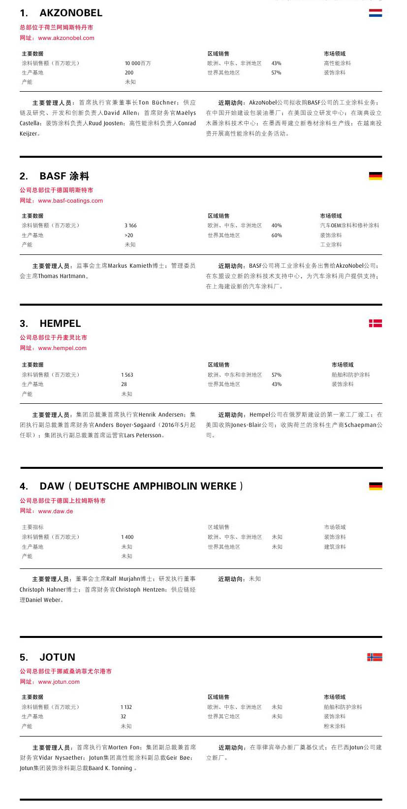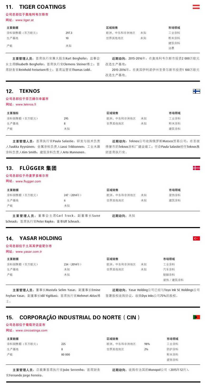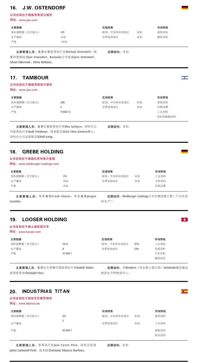 摘要:本雜志根據各公司的收益情況,對總部設在歐洲大陸的歐洲涂料行業前25名進行了排行。