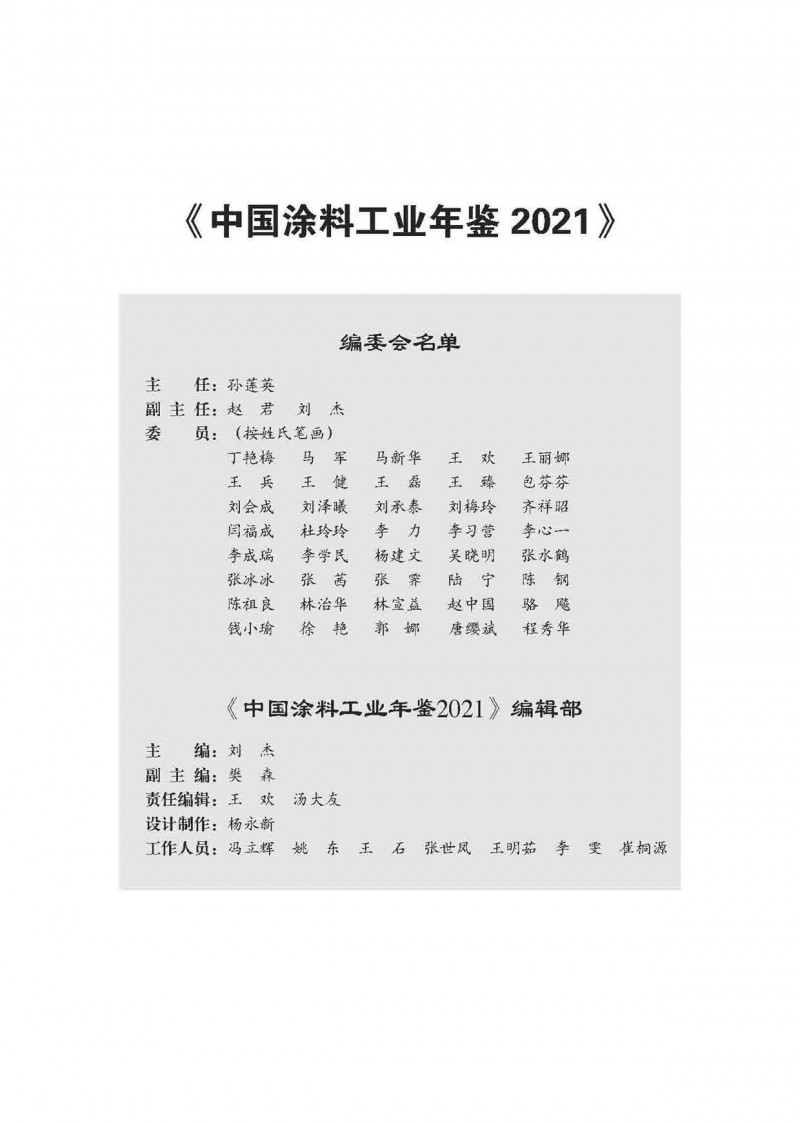 《中國涂料工業年鑒2021》共分7個章節,總結了2021年中國涂料工業經濟運行現狀,收錄了2021年度與涂料和顏料行業相關的政策法規及標準,闡述了我國涂料細分領域2021年度經濟運行、市場狀況、技術新進展及未來發展,整理了國內主要地區的涂料工業運行及園區建設現狀,以及全球不同涂料領域市場發展狀況,總結了我國主要涂料用原材料工業的新進展和市場走勢,記錄了2021年我國涂料行業經歷的重要事件等。