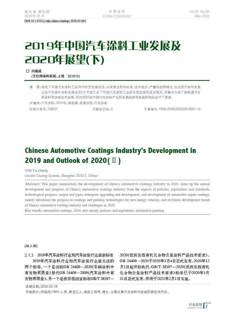2019年中國汽車涂料工業發展及2020年展望(下)