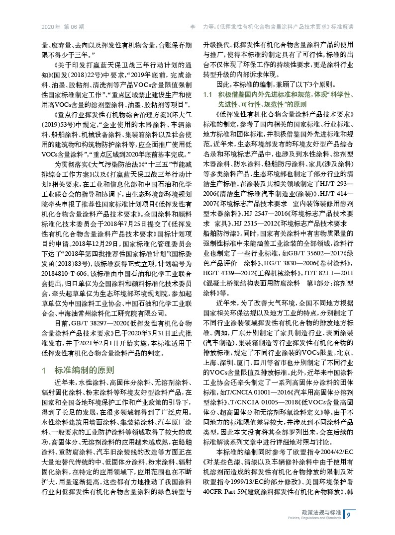 對推薦性國家標準GB/T 38597—2020《低揮發(fā)性有機化合物含量涂料產品技術要求》的編制原則進行了詳細說明,并對其應用與實施中的注意事項進行了解讀,為標準的實施起到了有效的梳理和引導作用。