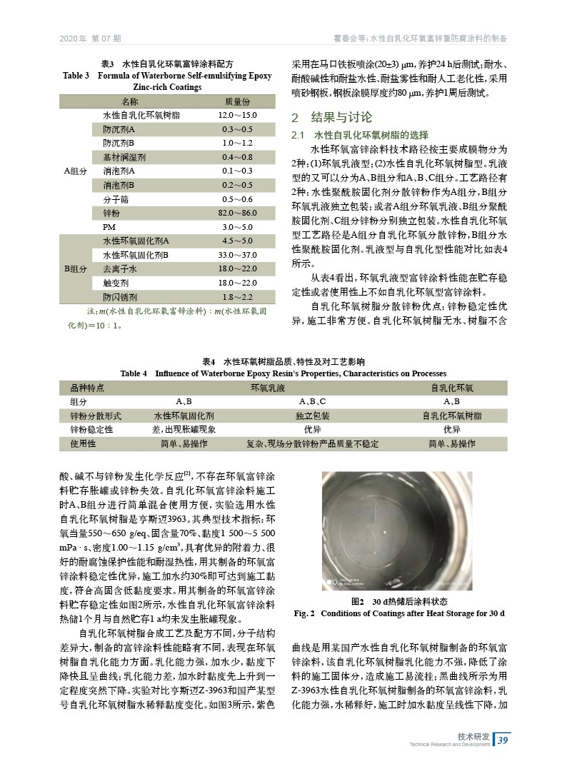 水性自乳化環氧富鋅重防腐涂料的制備