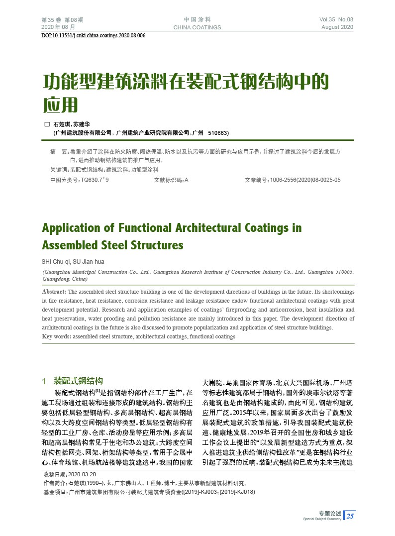 功能型建筑涂料在裝配式鋼結構中的應用