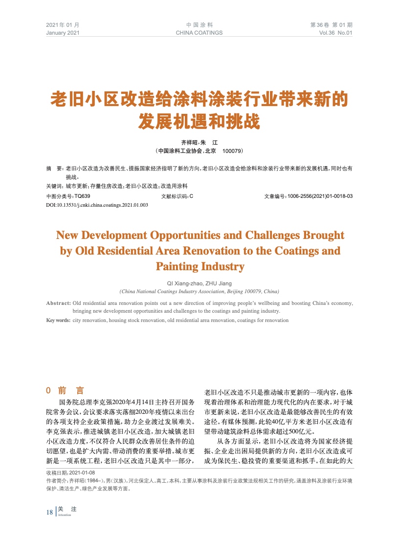 本文系作者@齊祥昭,朱 江 授權中國涂料網發表,并經中國涂料網編輯,未經允許不得轉載,如需轉載請聯系chinacoatingnet@vip.163.com