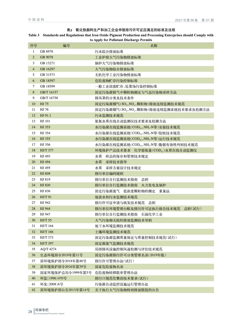 摘要:梳理了我國(guó)氧化鐵顏料生產(chǎn)和加工企業(yè)應(yīng)遵循的各類排污標(biāo)準(zhǔn)和法規(guī),重點(diǎn)闡述了其中針對(duì)廢水處理及利用的3部環(huán)境保護(hù)標(biāo)準(zhǔn)所含項(xiàng)目和限值要求,以及當(dāng)前氧化鐵顏料生產(chǎn)和加工廢水情況,比較了3種氧化鐵顏料生產(chǎn)工藝下的廢水處理和利用情況,并指出各自存在的問題。