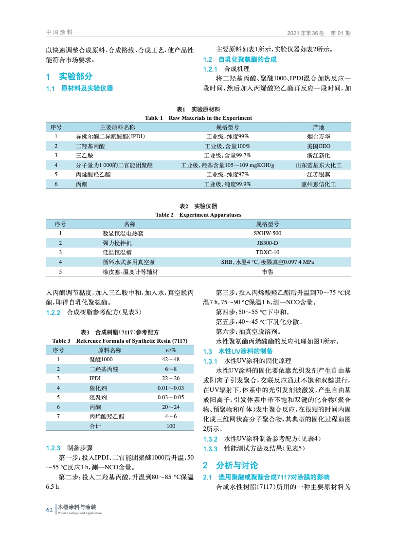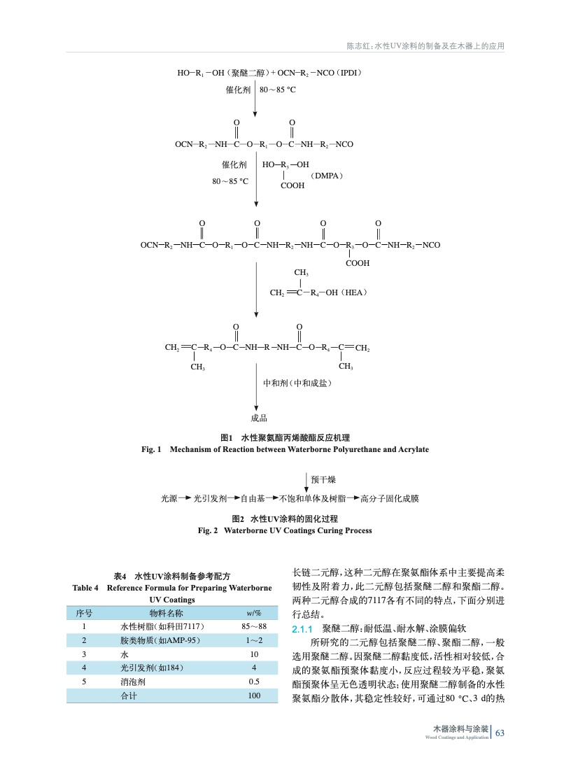 摘要:采用平行實(shí)驗(yàn)的方法,采用異佛爾酮二異氰酸酯(IPDI)和聚醚二醇反應(yīng),引入—COOH基團(tuán),加入胺中和得到水性UV樹(shù)脂,并制備水性UV涂料,討論了長(zhǎng)鏈二元醇和中和劑的選擇對(duì)于產(chǎn)品性能的影響。介紹了水性UV涂料在家具和木材領(lǐng)域應(yīng)用實(shí)例,并給出了常用施工工藝,具有一定實(shí)用價(jià)值。