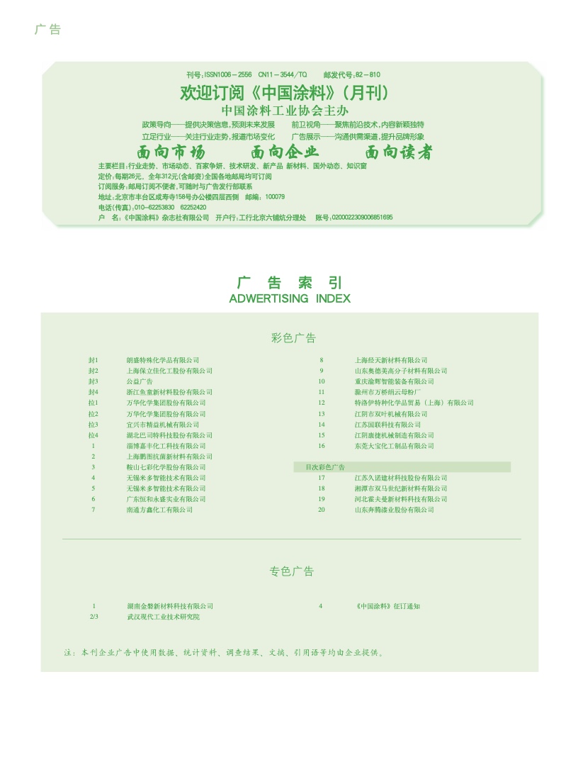 湖南金磐、武漢現代、《中國涂料》征訂通知