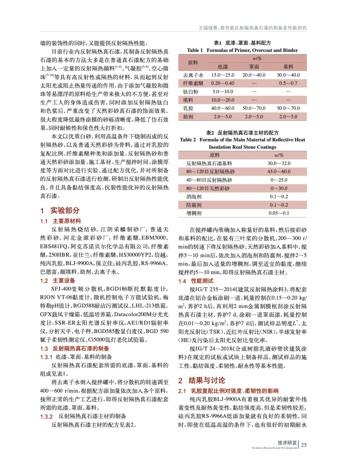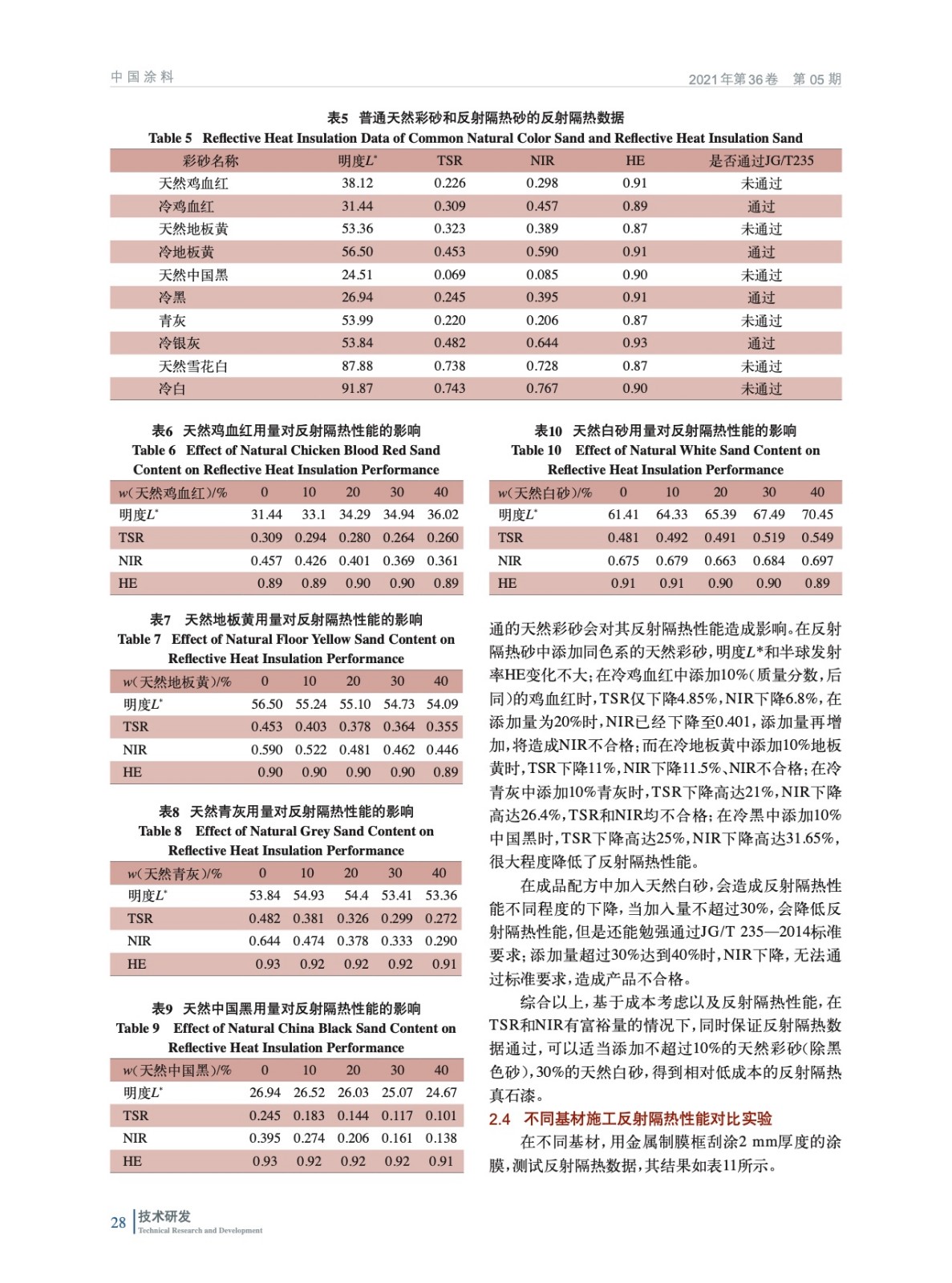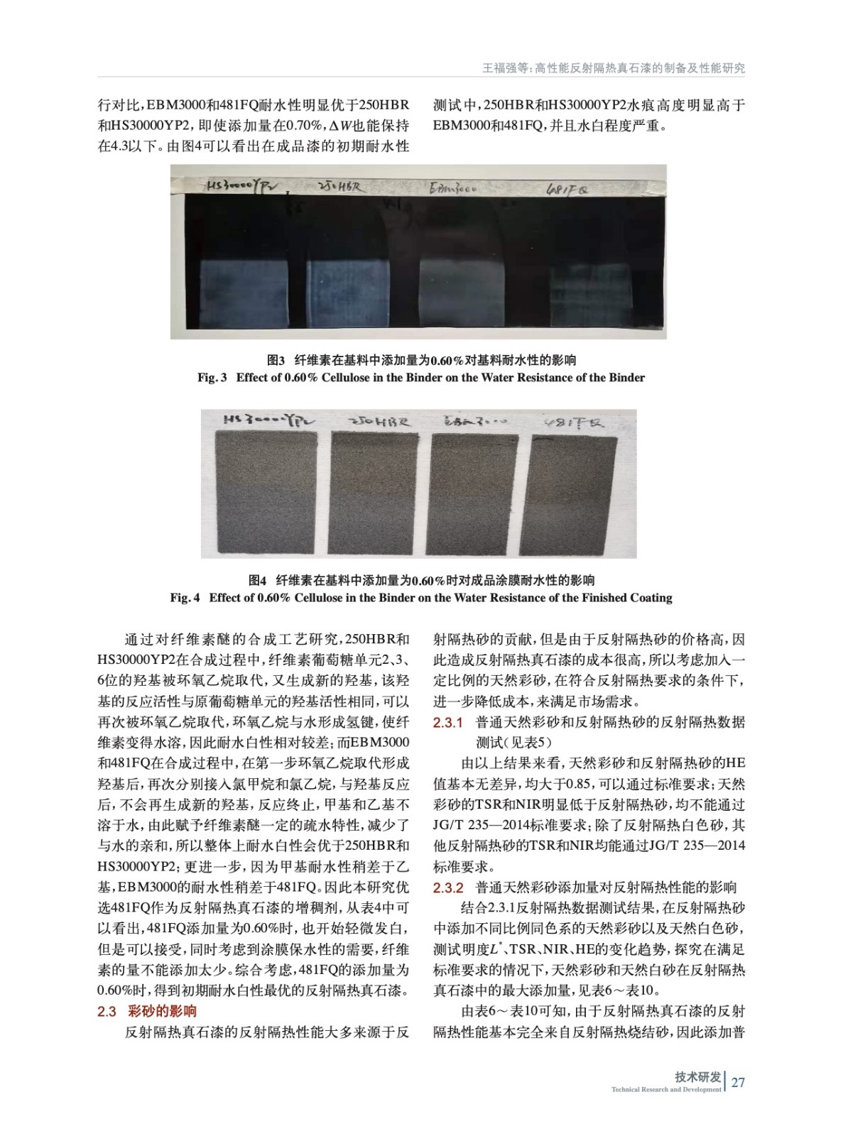 高性能反射隔熱真石漆的制備及性能研究