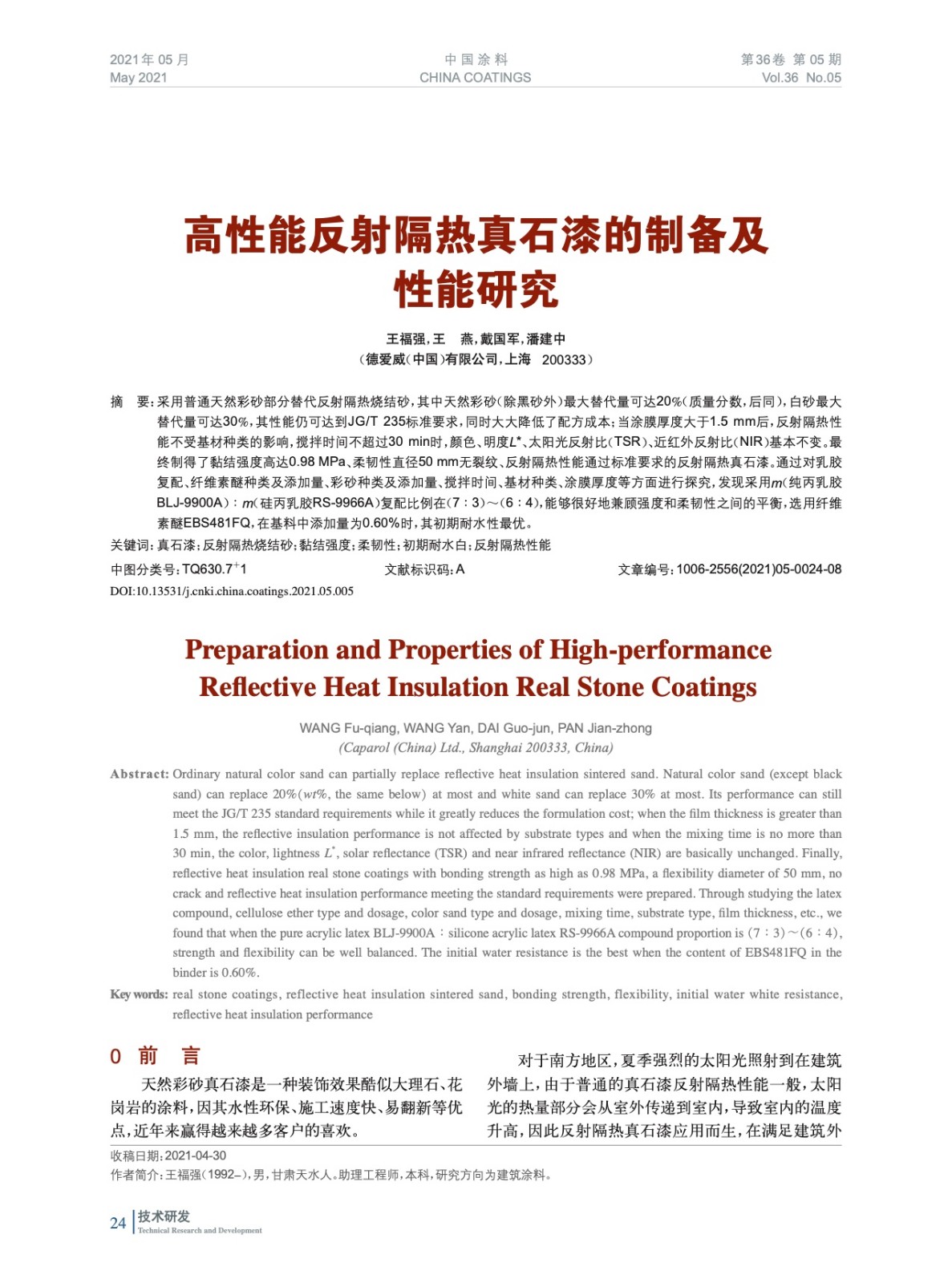 發表于2021-07-13 17:46:06| 次閱讀| 來源中國涂料| 作者王福強,王 燕,戴國軍,潘建中