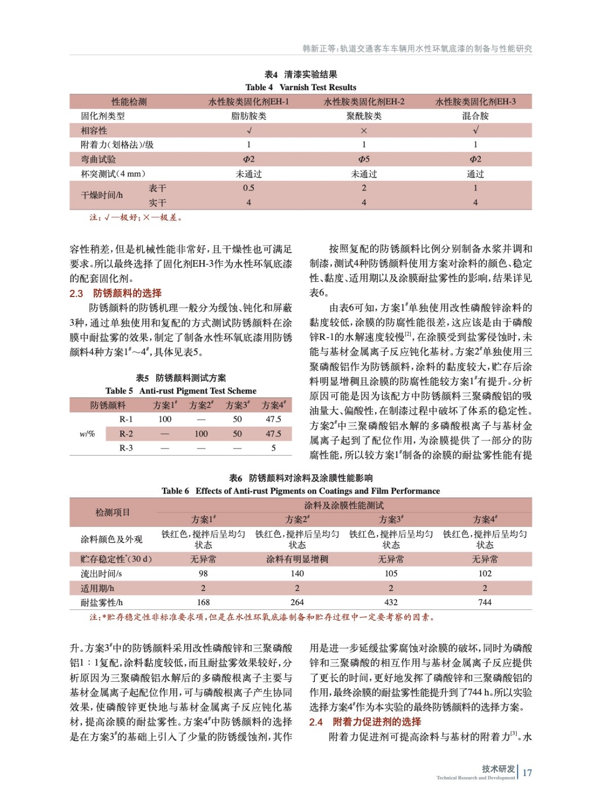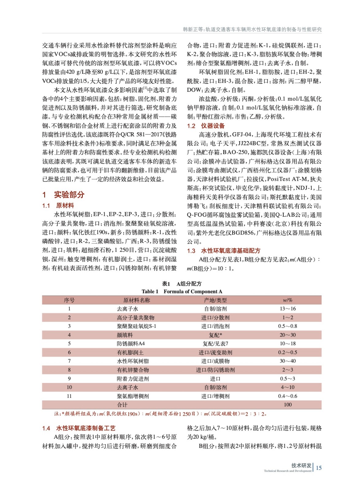 軌道交通客車車輛用水性環氧底漆的制備與性能研究