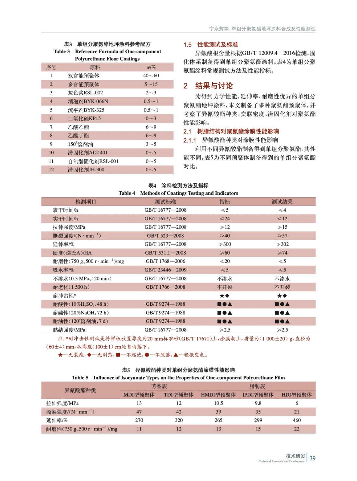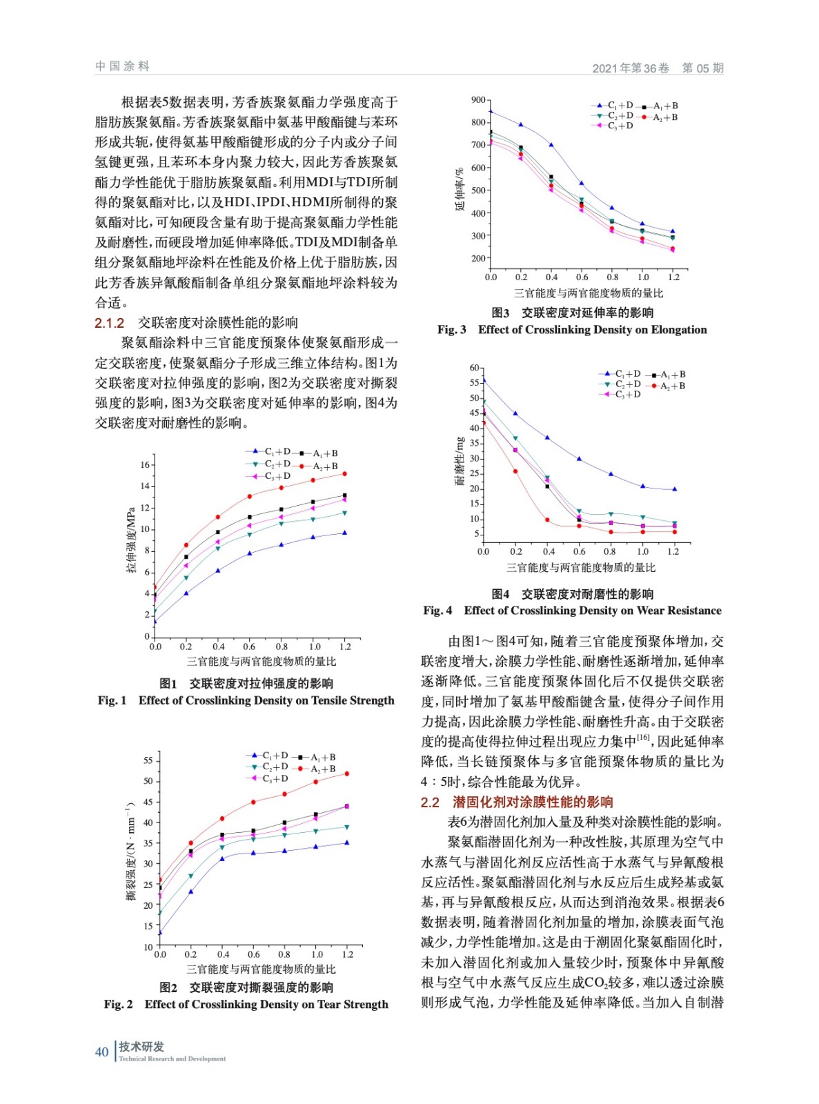 摘要:制備了一種單組分聚氨酯地坪涂料,考察了異氰酸酯種類、交聯密度及潛固化劑種類對其性能的影響。結果表明,以MDI所制單組分聚氨酯力學強度最高,HDI所制的力學性能最低;隨著交聯密度的增加力學強度及耐磨性增加,延伸率降低;利用自制潛固化劑RSL-001質量分數為3%時綜合性能可達最優。