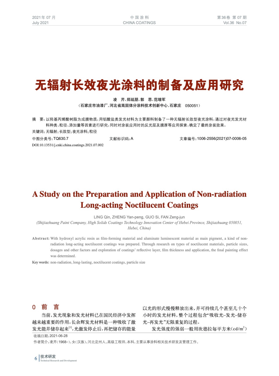 本文系作者@凌 芹,鄭延朋,郭 思,范增軍 授權(quán)中國(guó)涂料網(wǎng)發(fā)表,并經(jīng)中國(guó)涂料網(wǎng)編輯,未經(jīng)允許不得轉(zhuǎn)載,如需轉(zhuǎn)載請(qǐng)聯(lián)系chinacoatingnet@vip.163.com