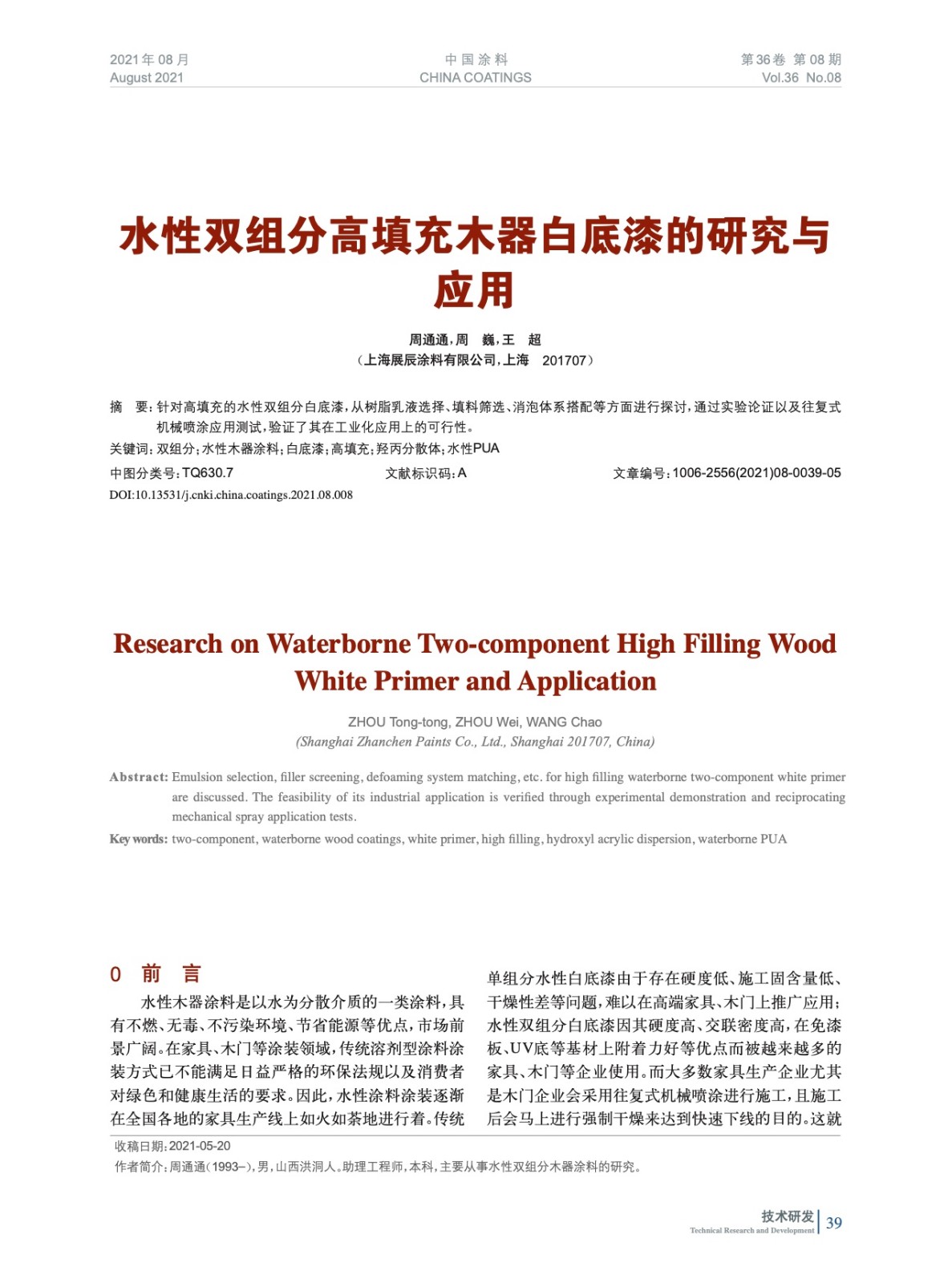 本文系作者@周通通,周 巍,王 超 授權中國涂料網發表,并經中國涂料網編輯,未經允許不得轉載,如需轉載請聯系chinacoatingnet@vip.163.com