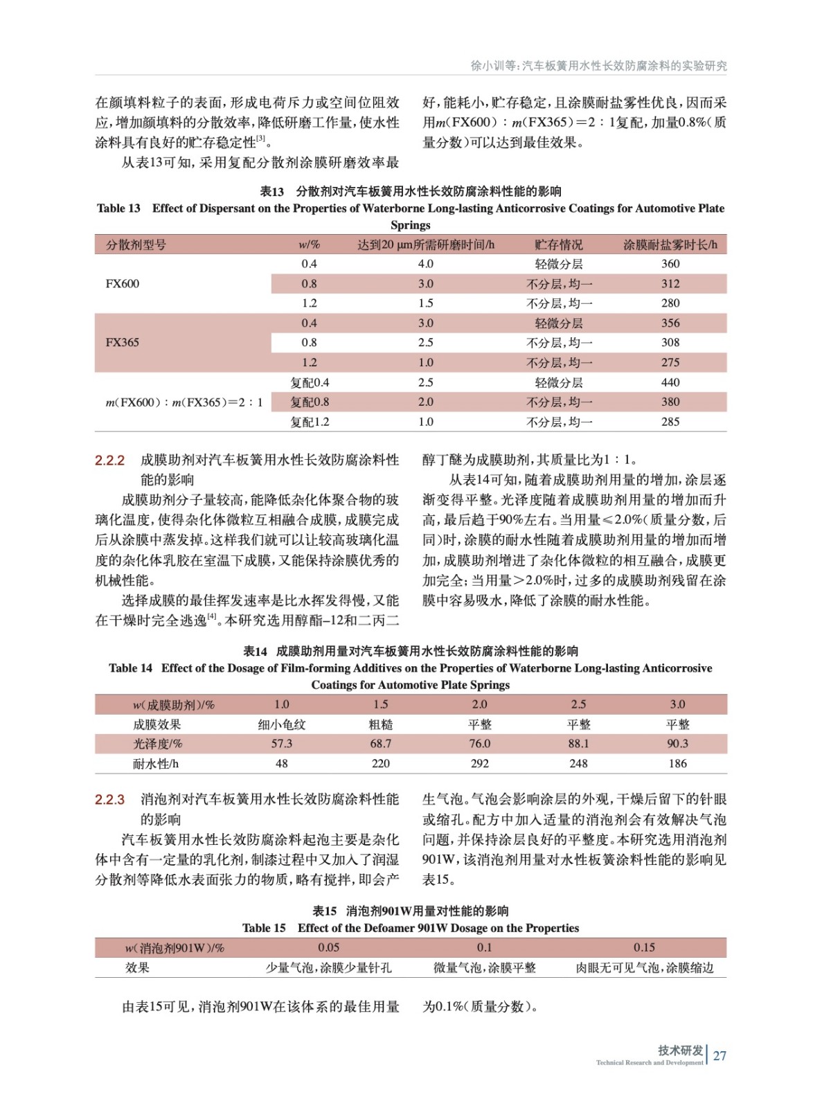 汽車板簧用水性長效防腐涂料的實驗研究