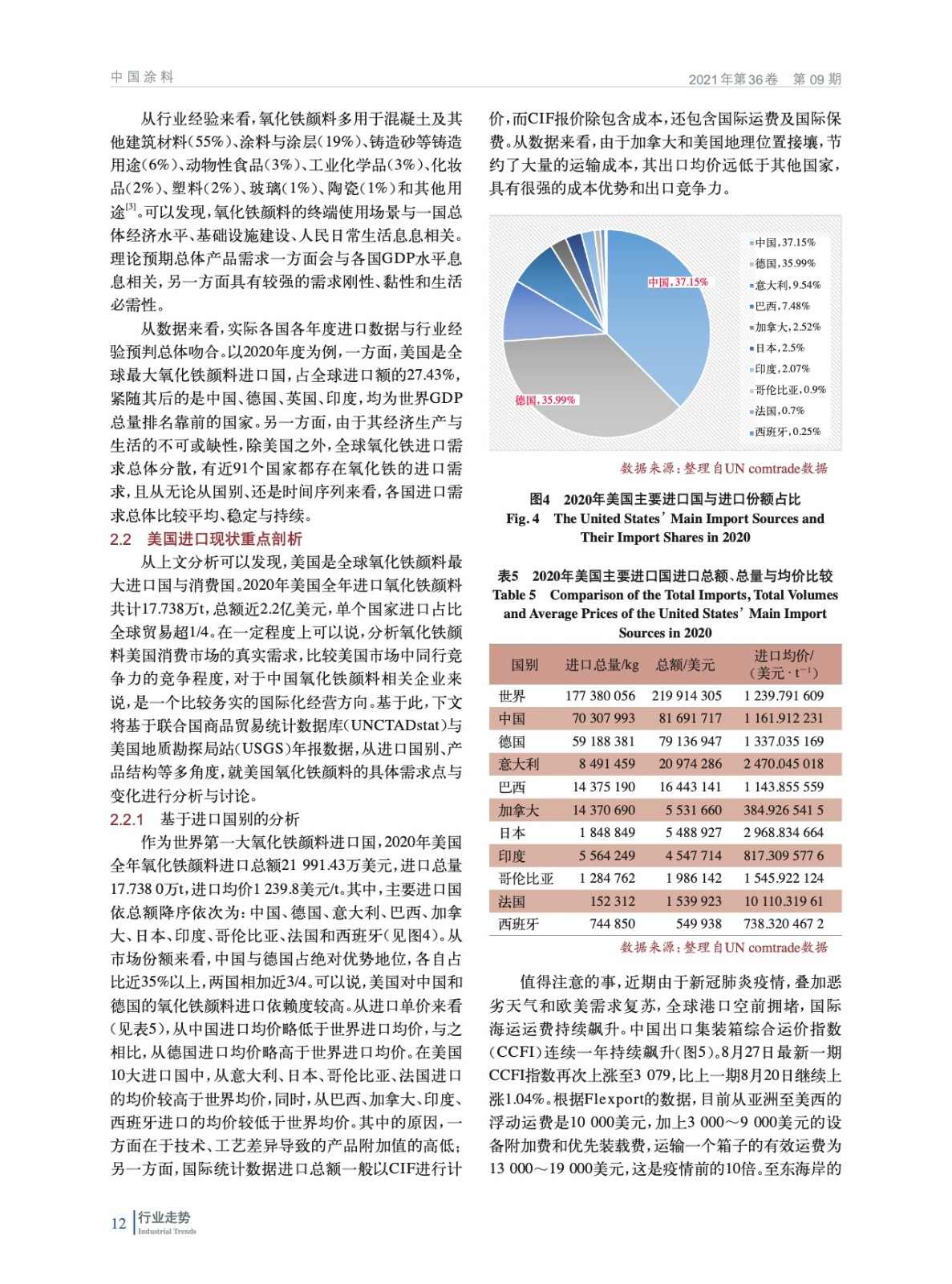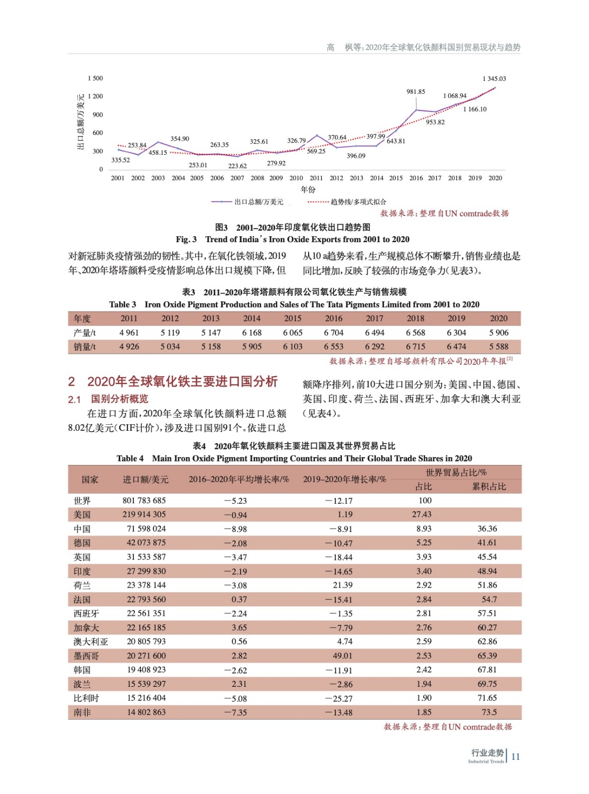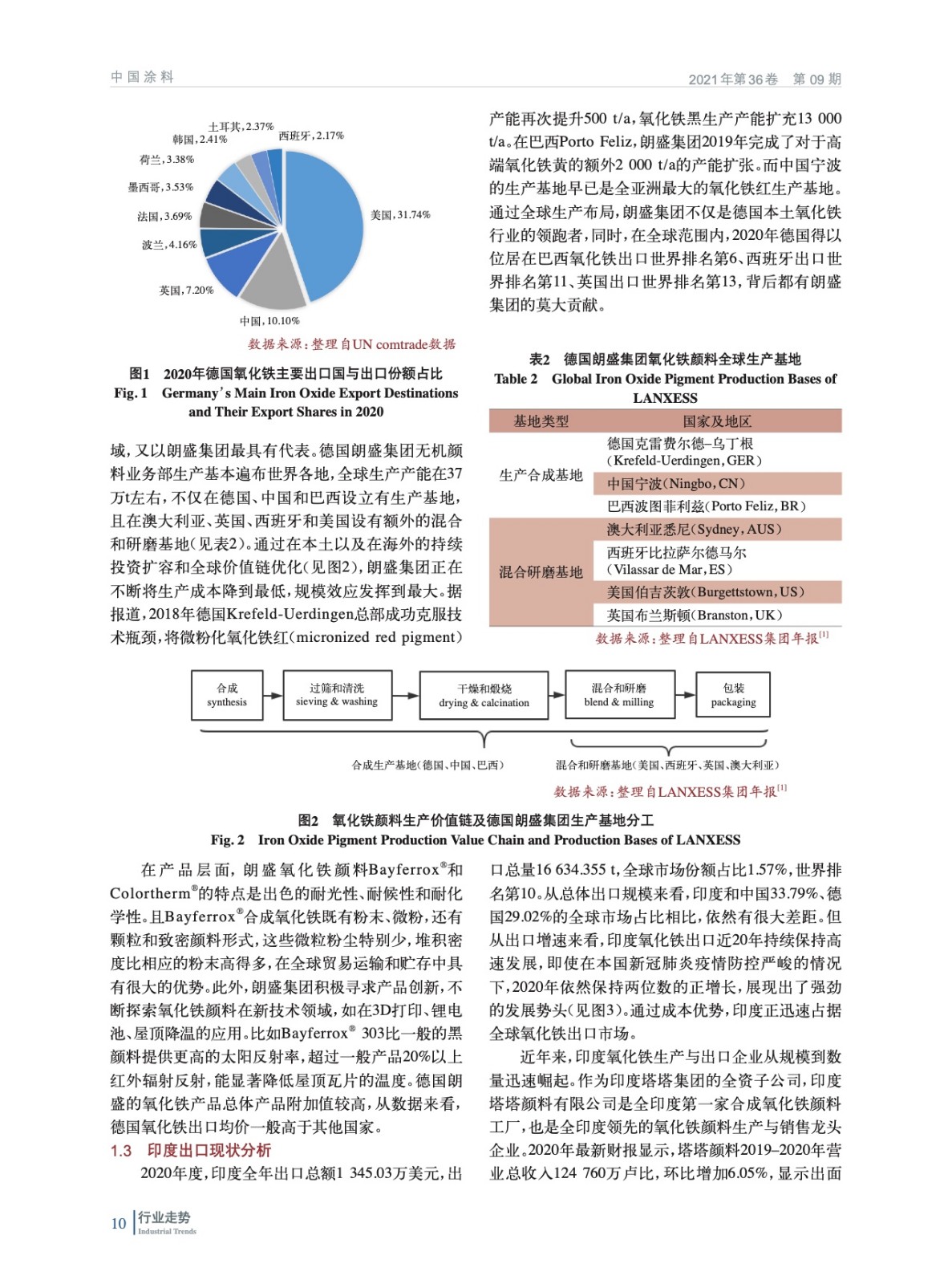 摘要:基于聯(lián)合國(guó)商品貿(mào)易統(tǒng)計(jì)數(shù)據(jù)庫(kù)(UNCTADstat)與美國(guó)地質(zhì)勘探局站(USGS)等公開(kāi)數(shù)據(jù)資源,詳細(xì)分析了2020年前后全球氧化鐵顏料貿(mào)易的最新現(xiàn)狀與趨勢(shì)。尤其就中國(guó)主要出口競(jìng)爭(zhēng)國(guó)德國(guó)、潛在出口競(jìng)爭(zhēng)國(guó)印度,以及主要出口目的國(guó)美國(guó)的發(fā)展趨勢(shì)與波動(dòng)進(jìn)行重點(diǎn)剖析與比較。