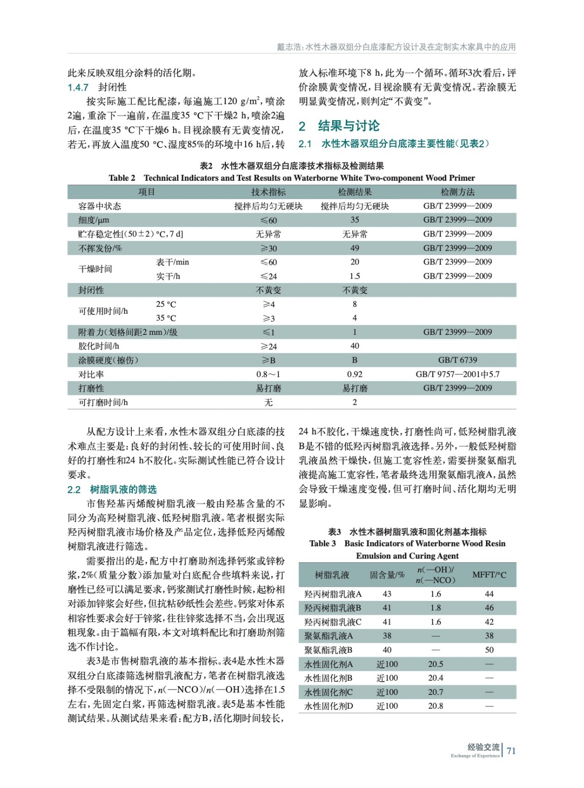 水性木器雙組分白底漆配方設計及在定制實木家具中的應用