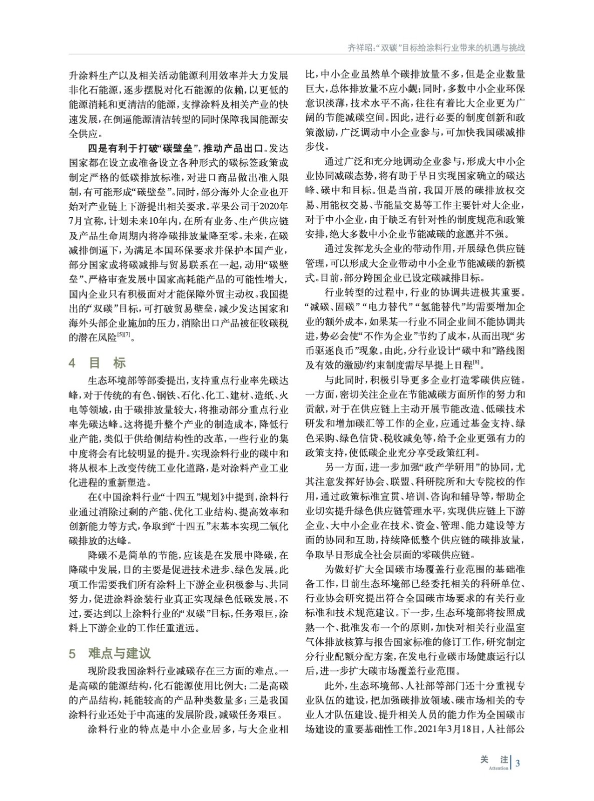 通過分析涂料行業碳排放的現狀和減排方向,依據《中國涂料行業“十四五”規劃》“雙碳”的目標,提出涂料行業達到目標的難點和痛點,指出需要涂料涂裝產業鏈上下游企業共同參與,積極搶占科技制高點,將挑戰化作機遇。