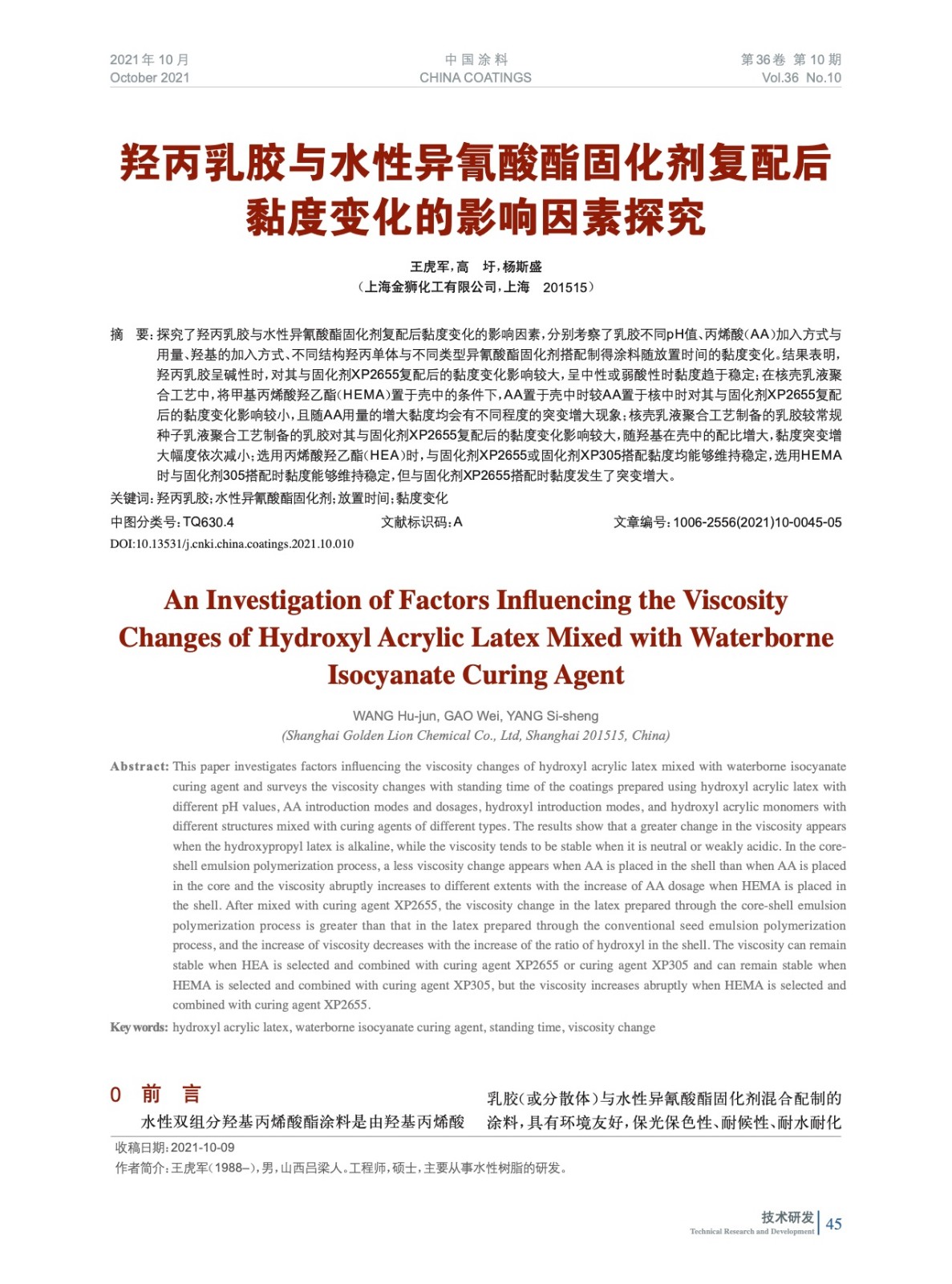 本文系作者@王虎軍,高 圩,楊斯盛 授權(quán)中國(guó)涂料網(wǎng)發(fā)表,并經(jīng)中國(guó)涂料網(wǎng)編輯,未經(jīng)允許不得轉(zhuǎn)載,如需轉(zhuǎn)載請(qǐng)聯(lián)系chinacoatingnet@vip.163.com