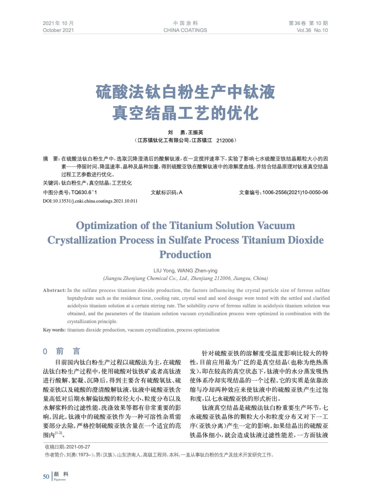 本文系作者@劉 勇,王振英 授權中國涂料網發表,并經中國涂料網編輯,未經允許不得轉載,如需轉載請聯系chinacoatingnet@vip.163.com