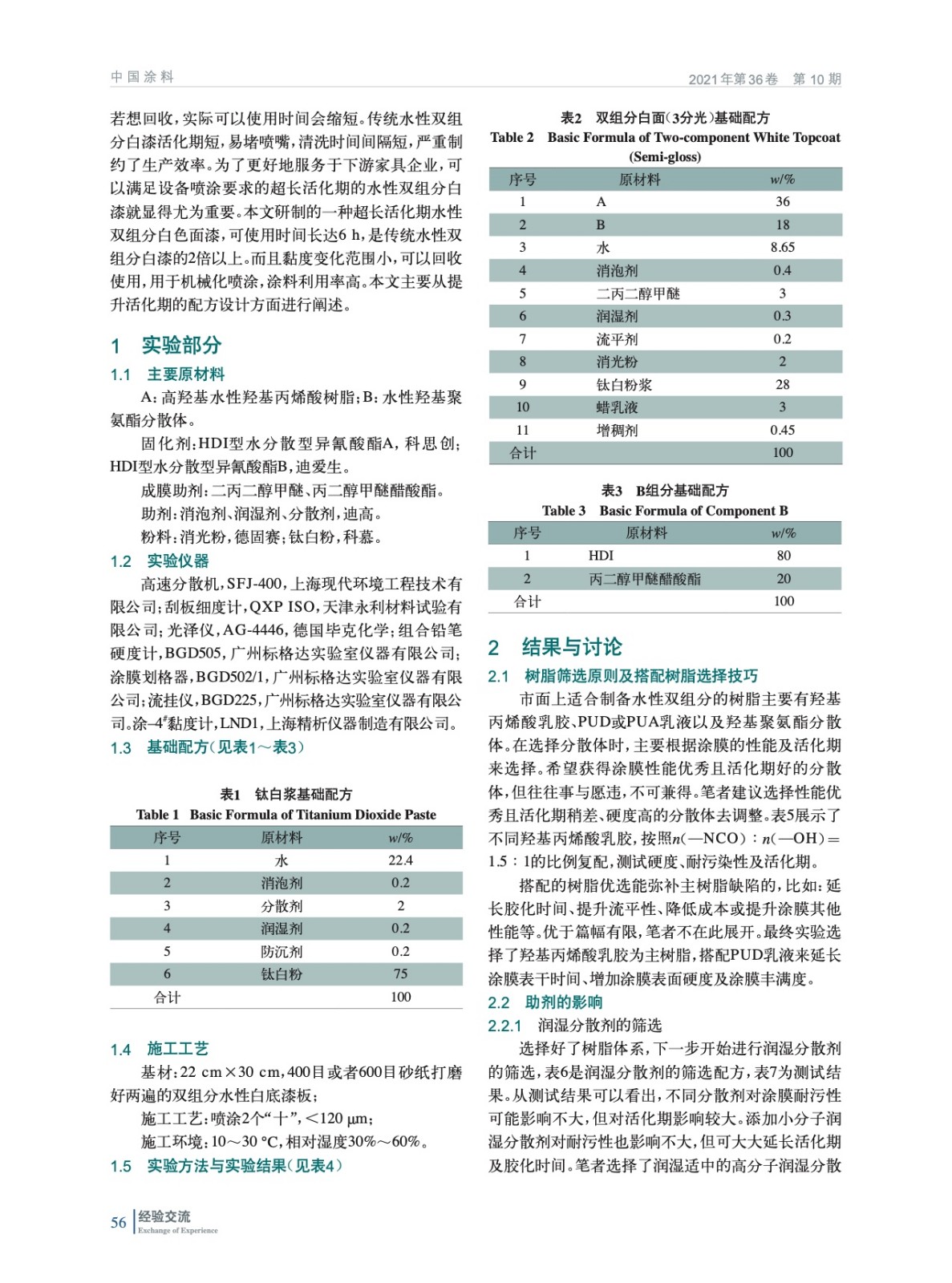 介紹了水性雙組分木器涂料在施工應用中出現的問題及分析解決方案,闡述了水性木器涂料在制備過程中原材料的選擇與工藝的制定,對水性雙組分木器涂料施工過程中活化期問題進行了探討并給出了指導與建議。