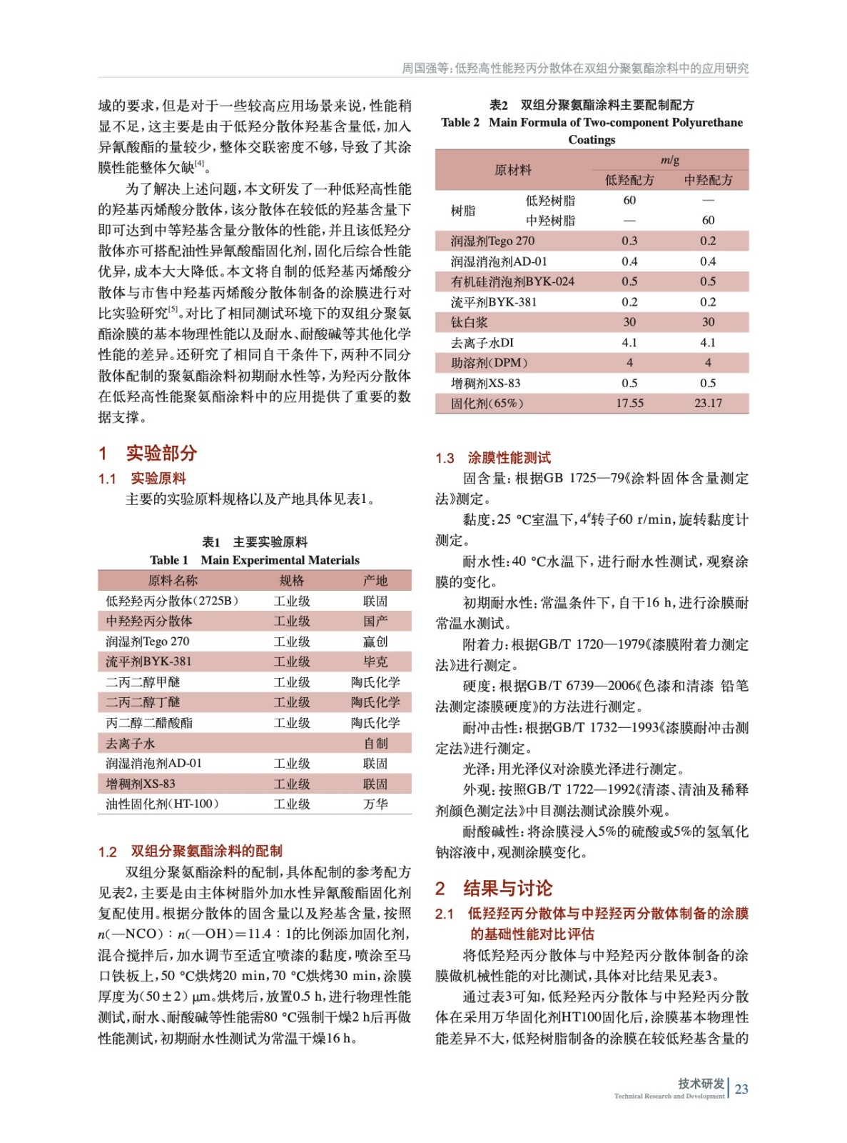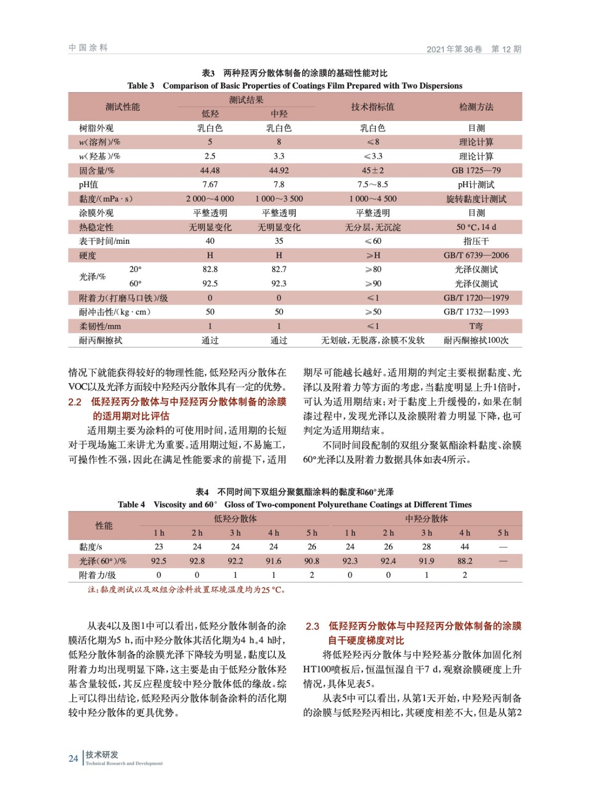 低羥高性能羥丙分散體在雙組分聚氨酯涂料中的應用研究