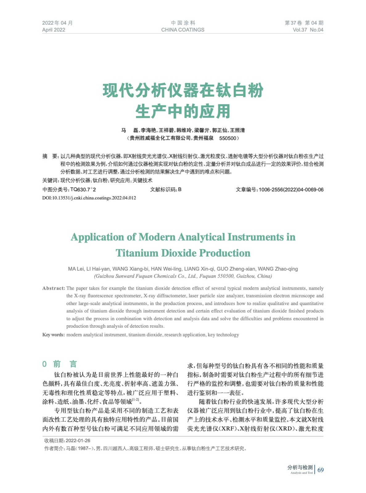 現(xiàn)代分析儀器在鈦白粉生產(chǎn)中的應(yīng)用