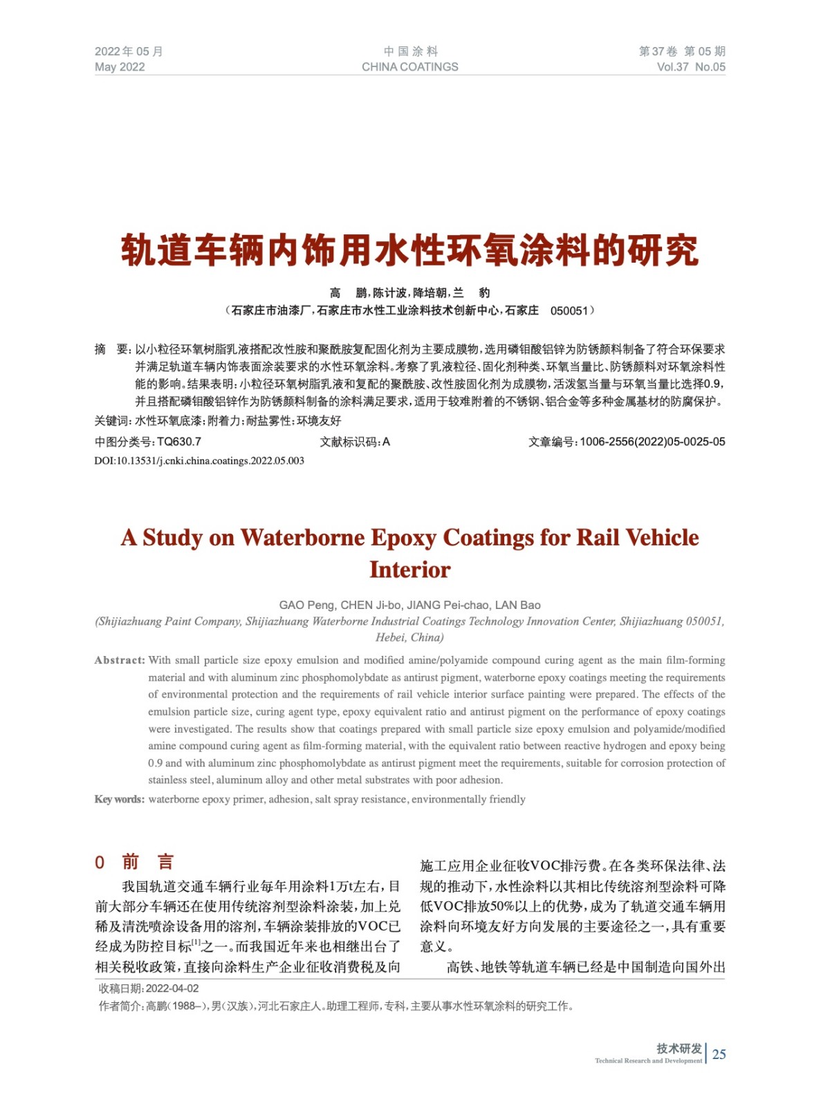 本文系作者@高 鵬,陳計波,降培朝,蘭 豹 授權中國涂料網發表,并經中國涂料網編輯,未經允許不得轉載,如需轉載請聯系chinacoatingnet@vip.163.com
