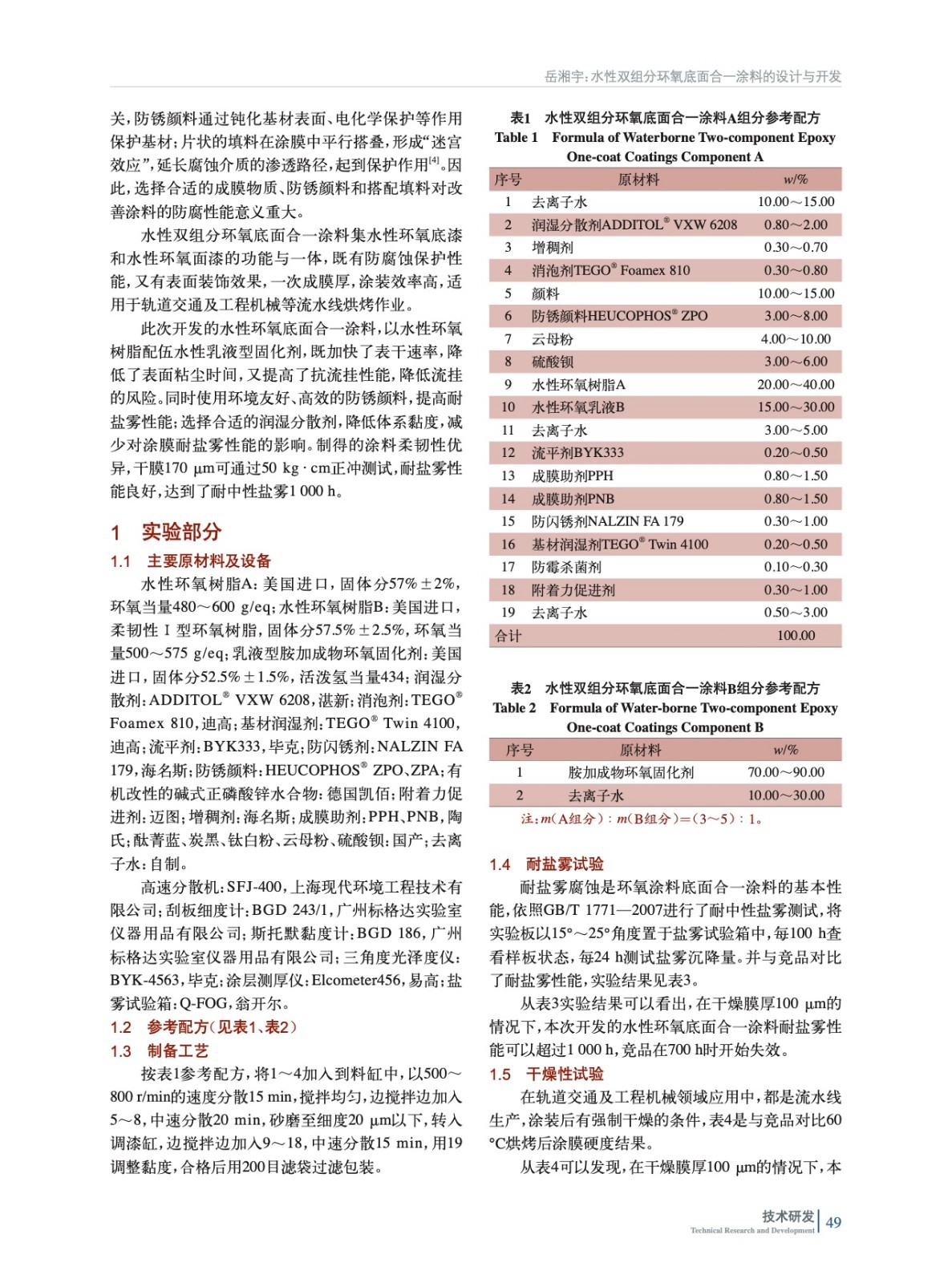 水性雙組分環氧底面合一涂料的設計與開發
