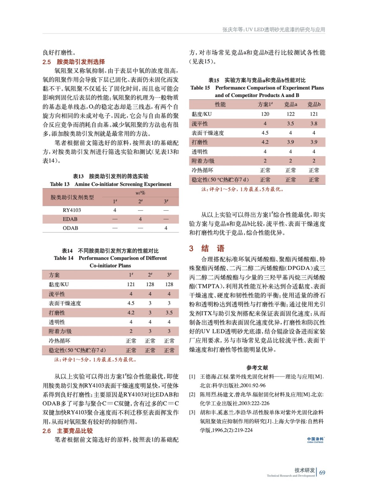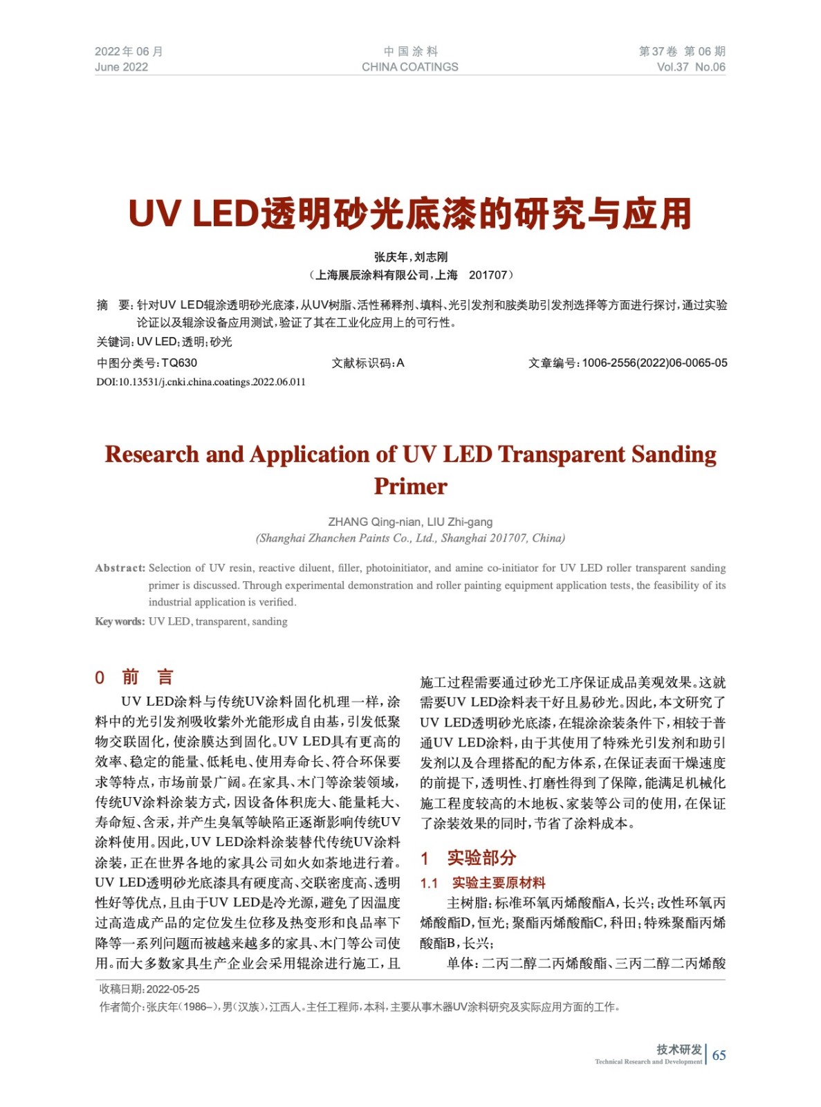 針對UV LED輥涂透明砂光底漆,從UV樹脂、活性稀釋劑、填料、光引發劑和胺類助引發劑選擇等方面進行探討,通過實驗論證以及輥涂設備應用測試,驗證了其在工業化應用上的可行性。