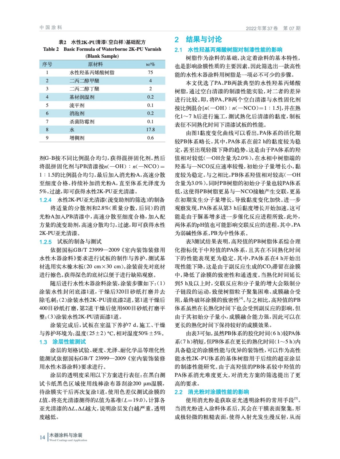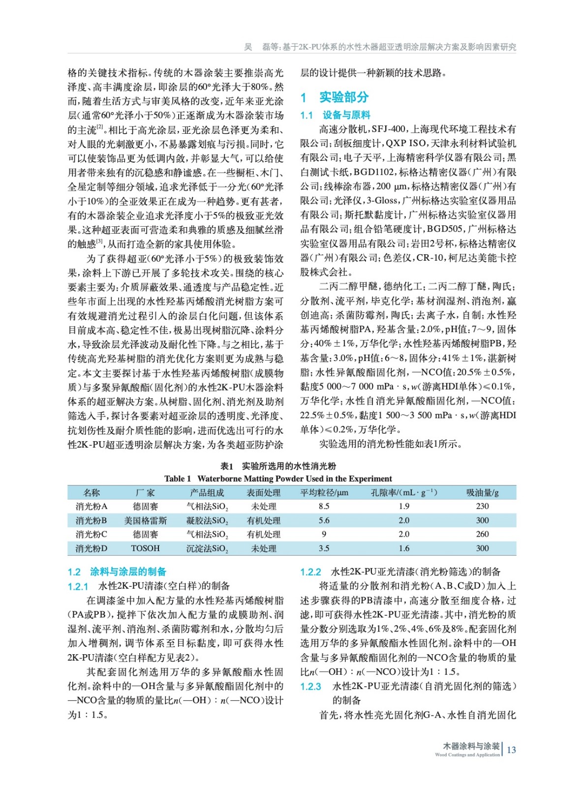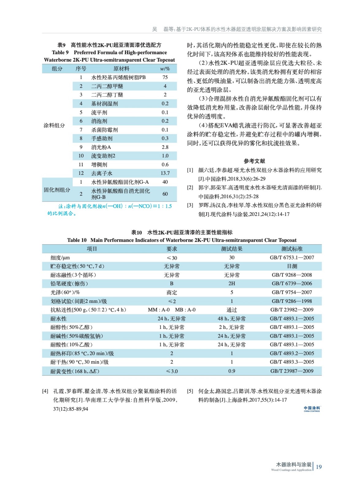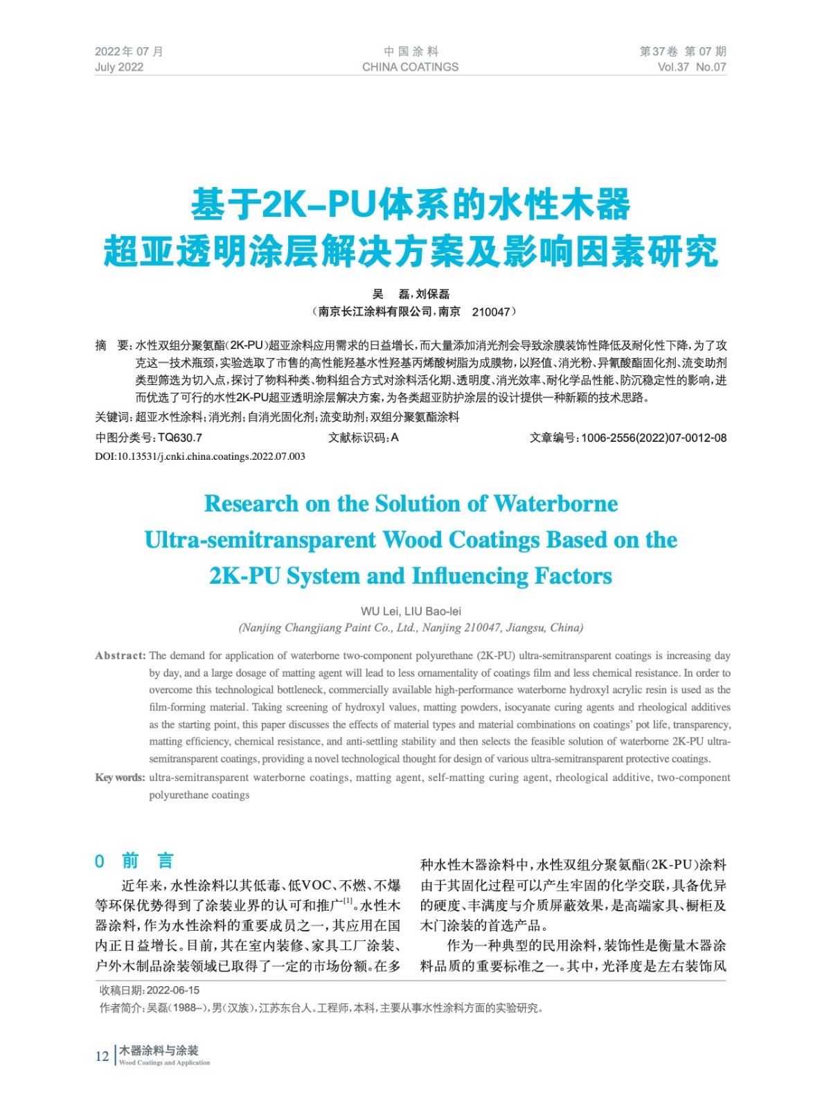 基于2K-PU體系的水性木器超亞透明涂層解決方案及影響因素研究
