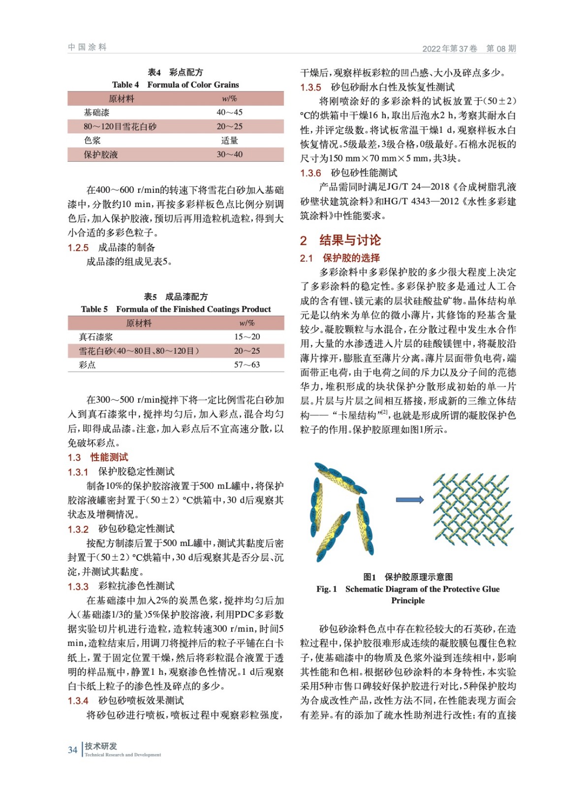 介紹了一種可以與真石漆相媲美的砂包砂涂料的制備,從保護膠、纖維素、乳膠方面平行實驗對比,最終確定了其最佳添加量。實驗結果表明,該砂包砂涂料,體系穩定,耐水白性優異,抗滲色性好,耐候性佳,施工美觀,凹凸感強,且較真石漆耗量少,價格低,前景可觀。