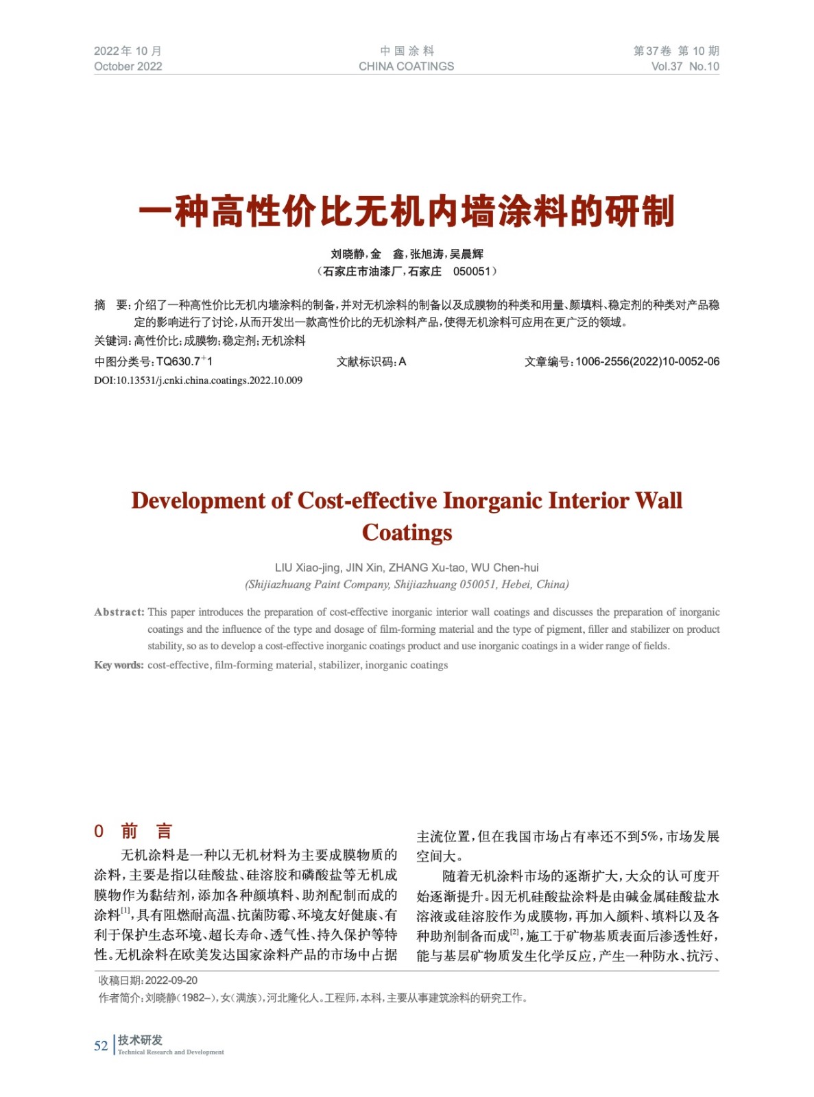 本文系作者@劉曉靜,金 鑫,張旭濤,吳晨輝 授權中國涂料網發表,并經中國涂料網編輯,未經允許不得轉載,如需轉載請聯系chinacoatingnet@vip.163.com