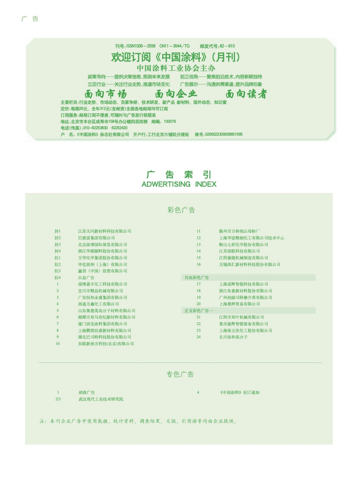 招商廣告、武漢現(xiàn)代、《中國涂料》征訂通知