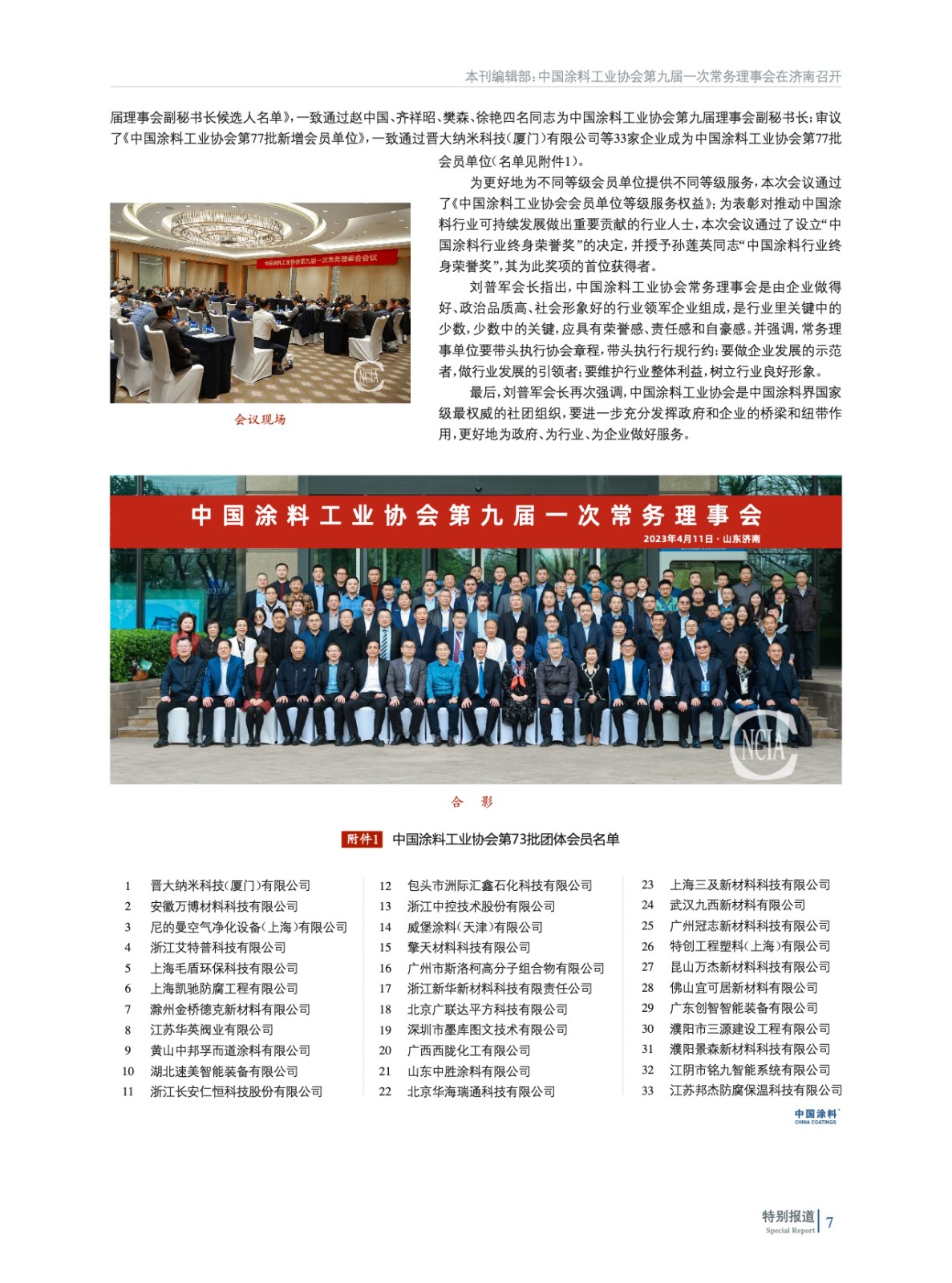 中國涂料工業協會第九屆一次常務理事會在濟南召開