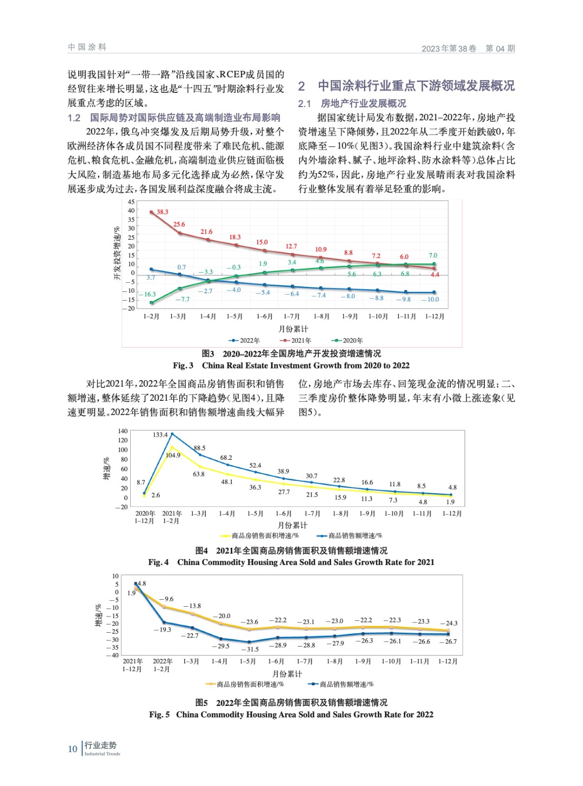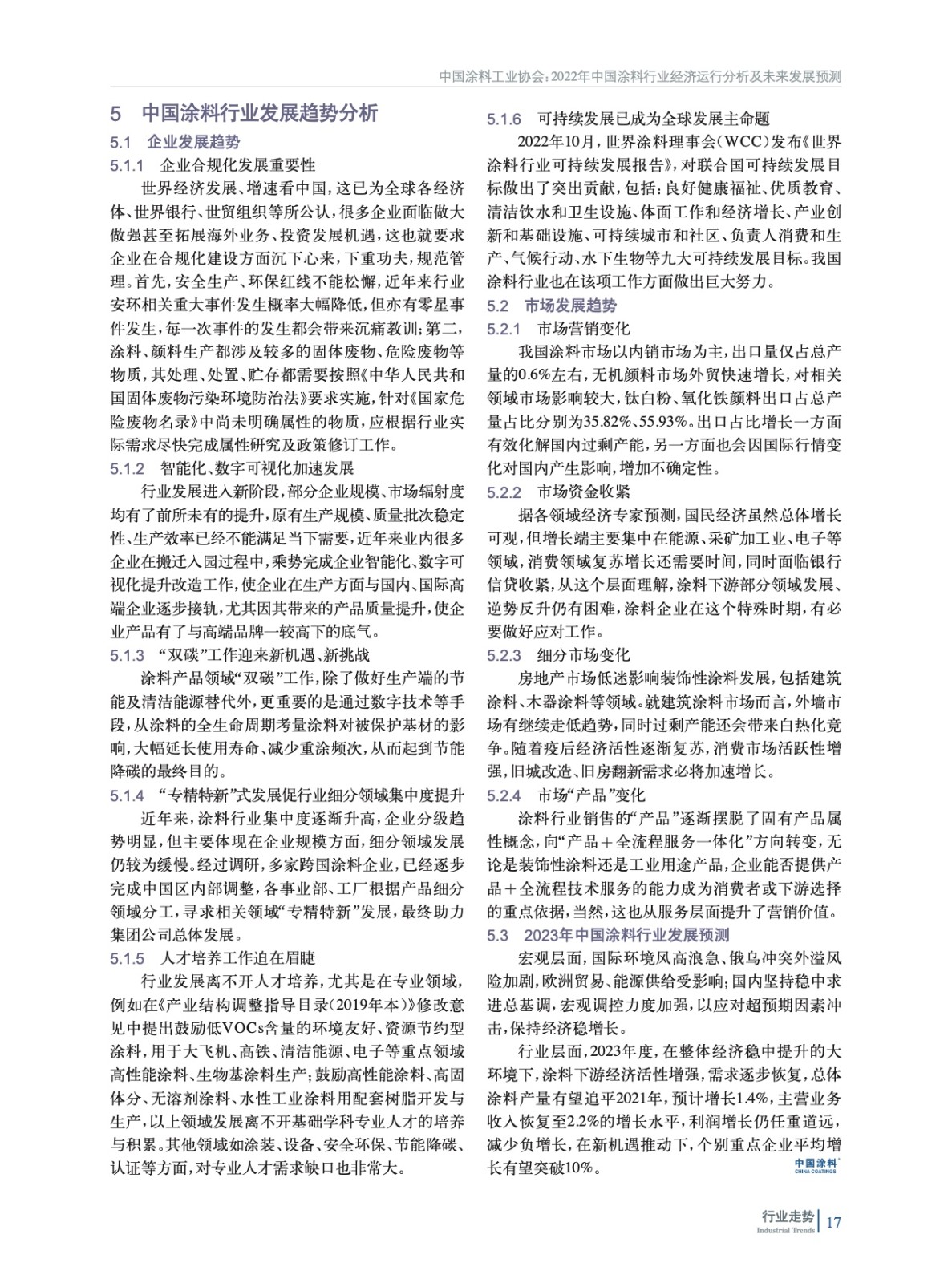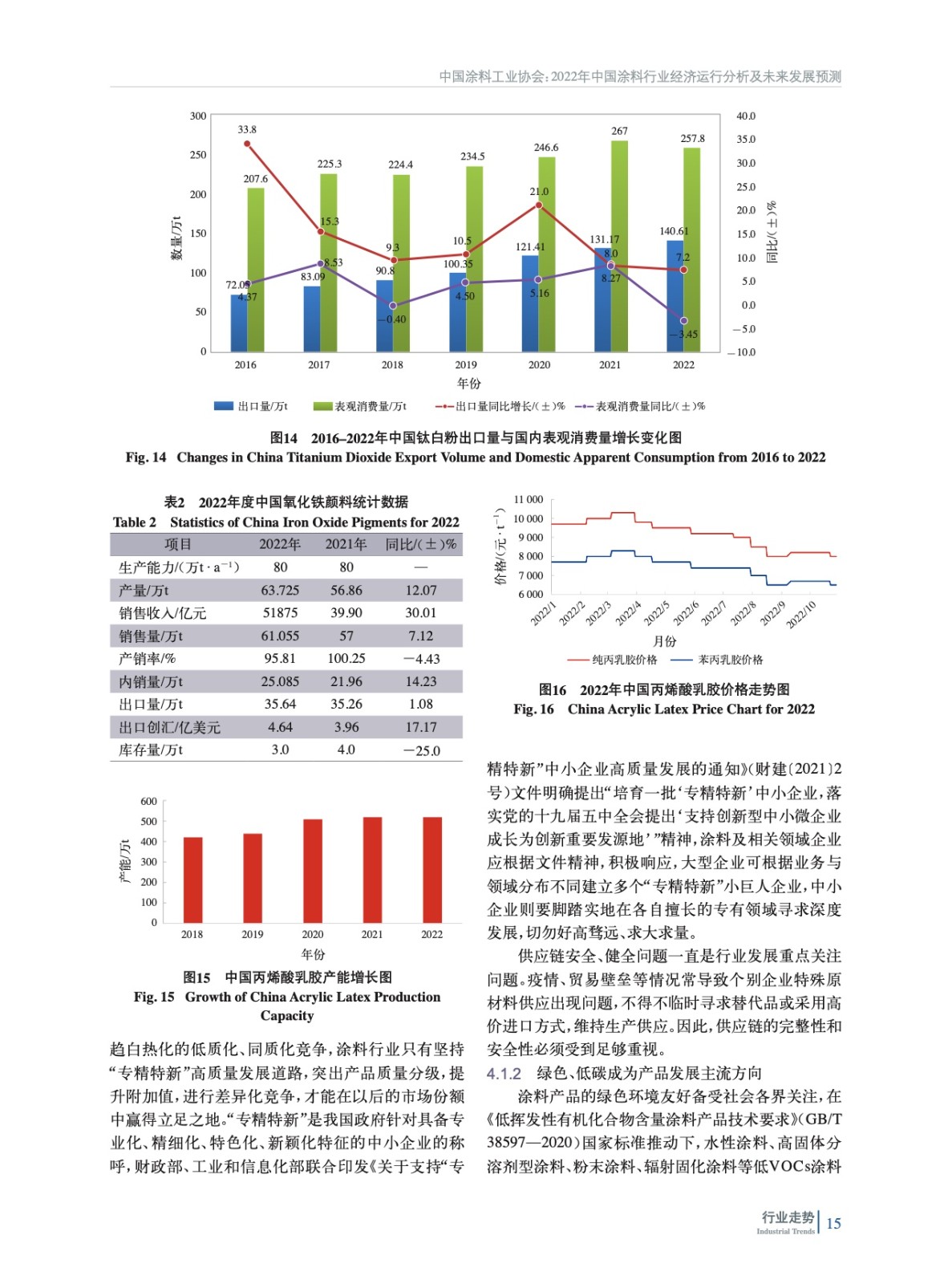 分析了2022年中國經濟發展宏觀環境,概括介紹了涂料行業重點下游行業經濟運行情況,重點分析了中國涂料行業經濟運行情況和特征,并對上游鈦白粉、氧化鐵和丙烯酸乳膠領域發展情況進行了概述。最后對中國涂料行業發展趨勢進行了分析和預測。