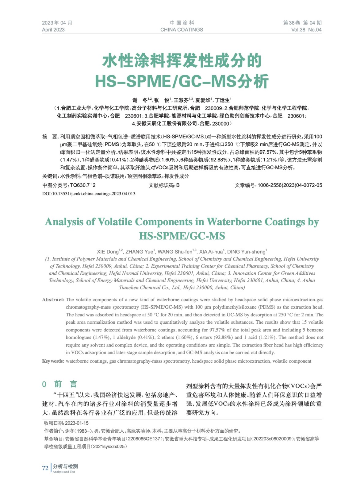 發表于2023-07-23 23:05:19| 次閱讀| 來源中國涂料| 作者謝 冬,張 悅,王淑芬,夏愛華,丁運生