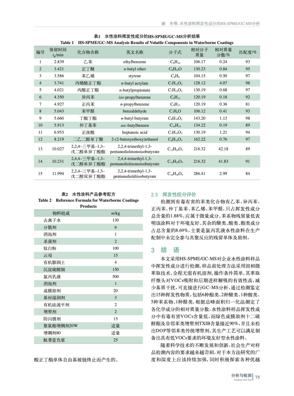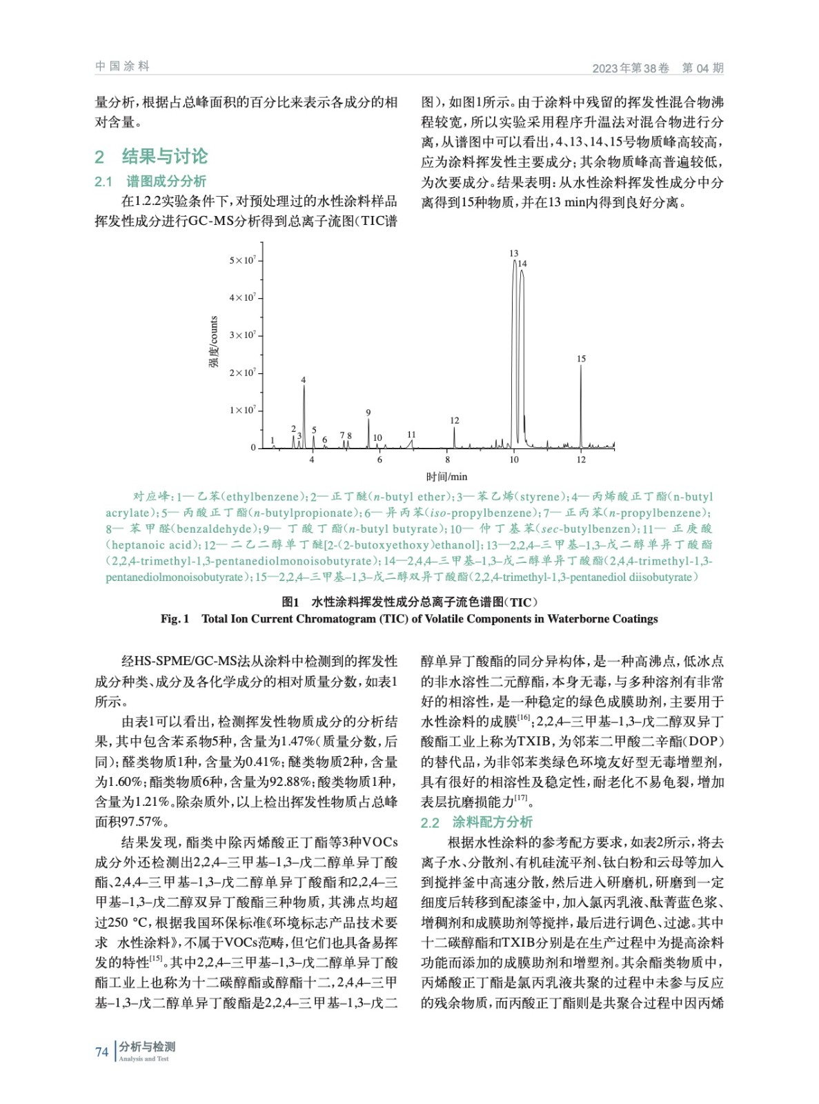 水性涂料揮發性成分的HS-SPME/GC-MS分析