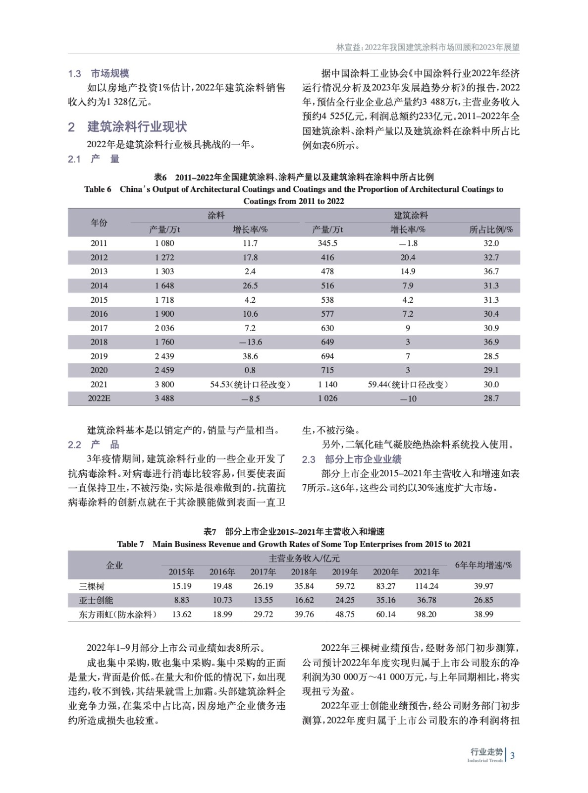介紹了2022年我國建筑涂料的發展背景,從產量、新產品、頭部企業狀況等方面總結了建筑涂料2022年現狀,指出了建筑涂料行業面臨的挑戰及2023年建筑涂料行業機遇。