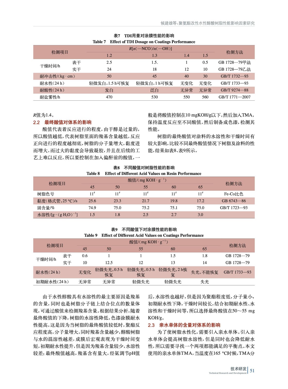 聚氨酯改性水性醇酸樹脂性能影響因素研究