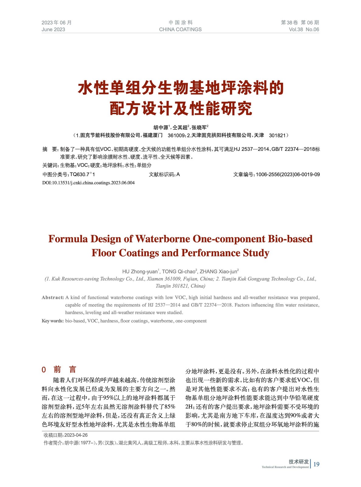 水性單組分生物基地坪涂料的配方設(shè)計(jì)及性能研究