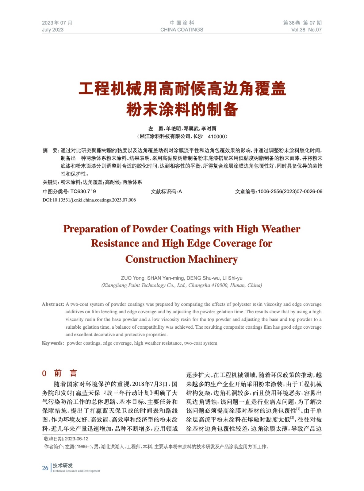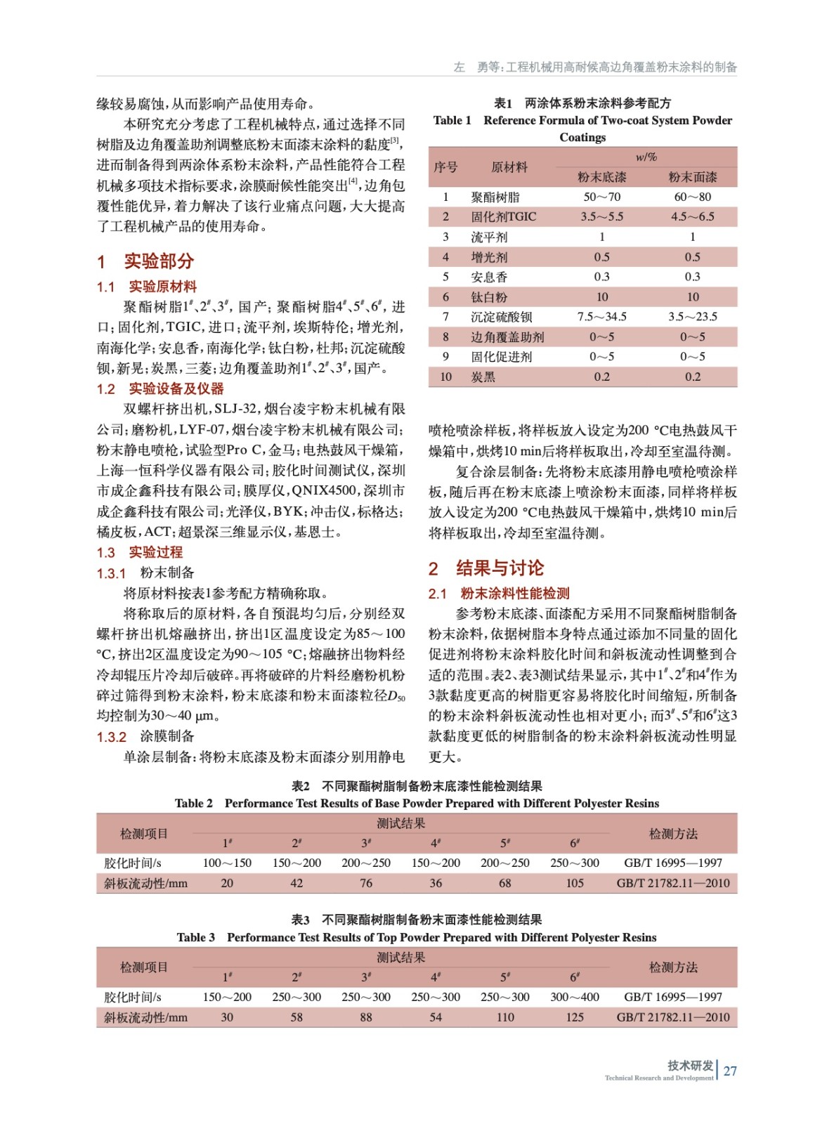 工程機(jī)械用高耐候高邊角覆蓋粉末涂料的制備