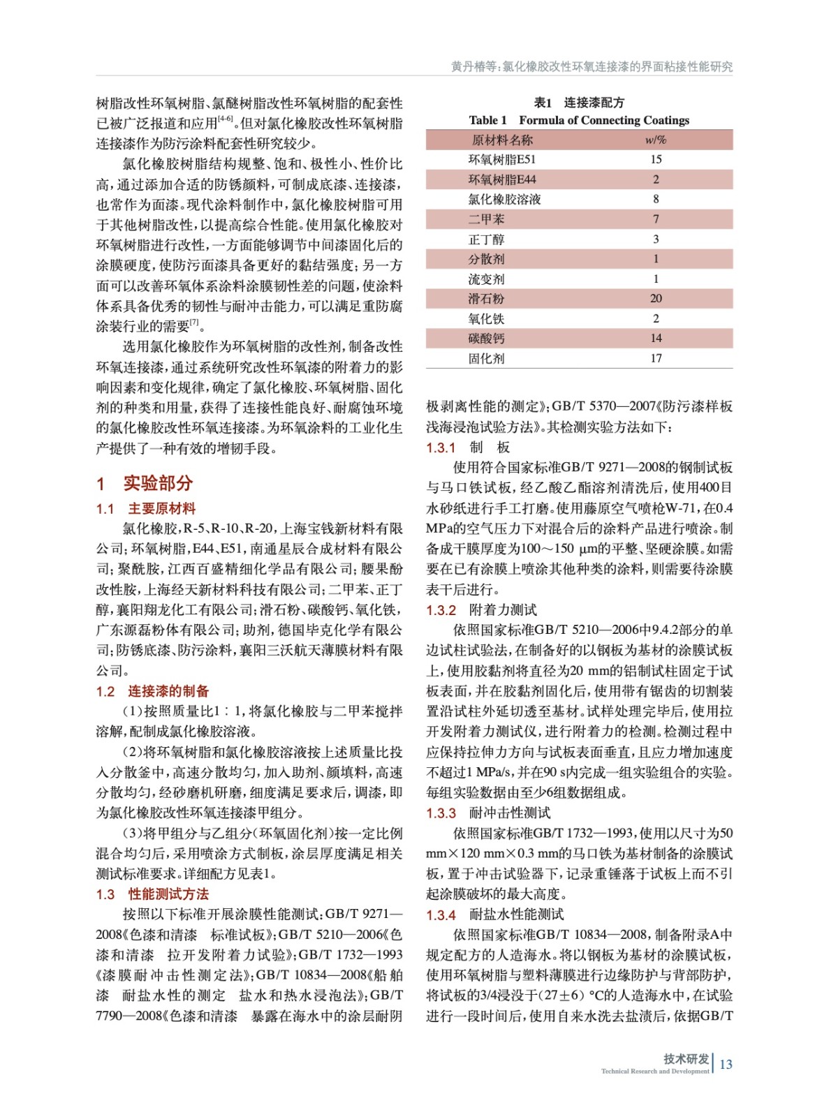 氯化橡膠改性環氧連接漆的界面粘接性能研究