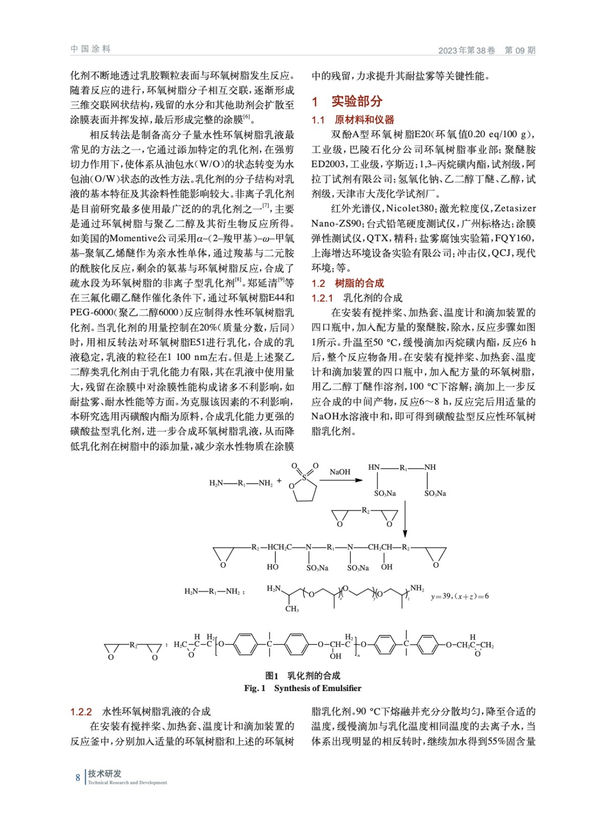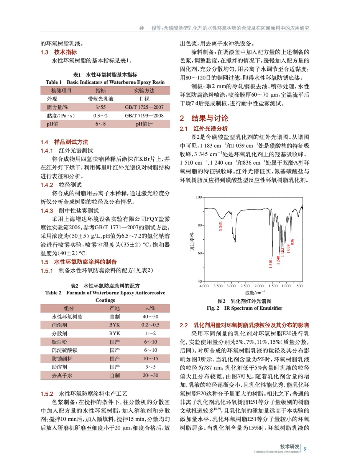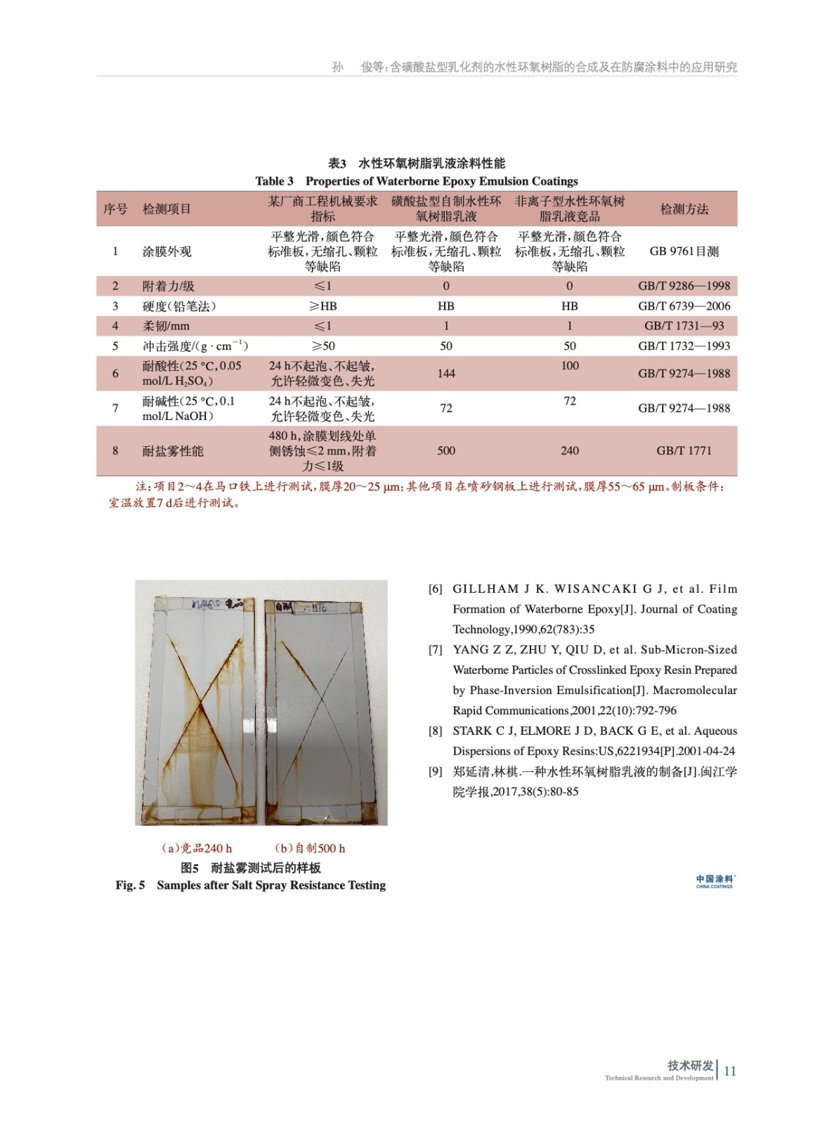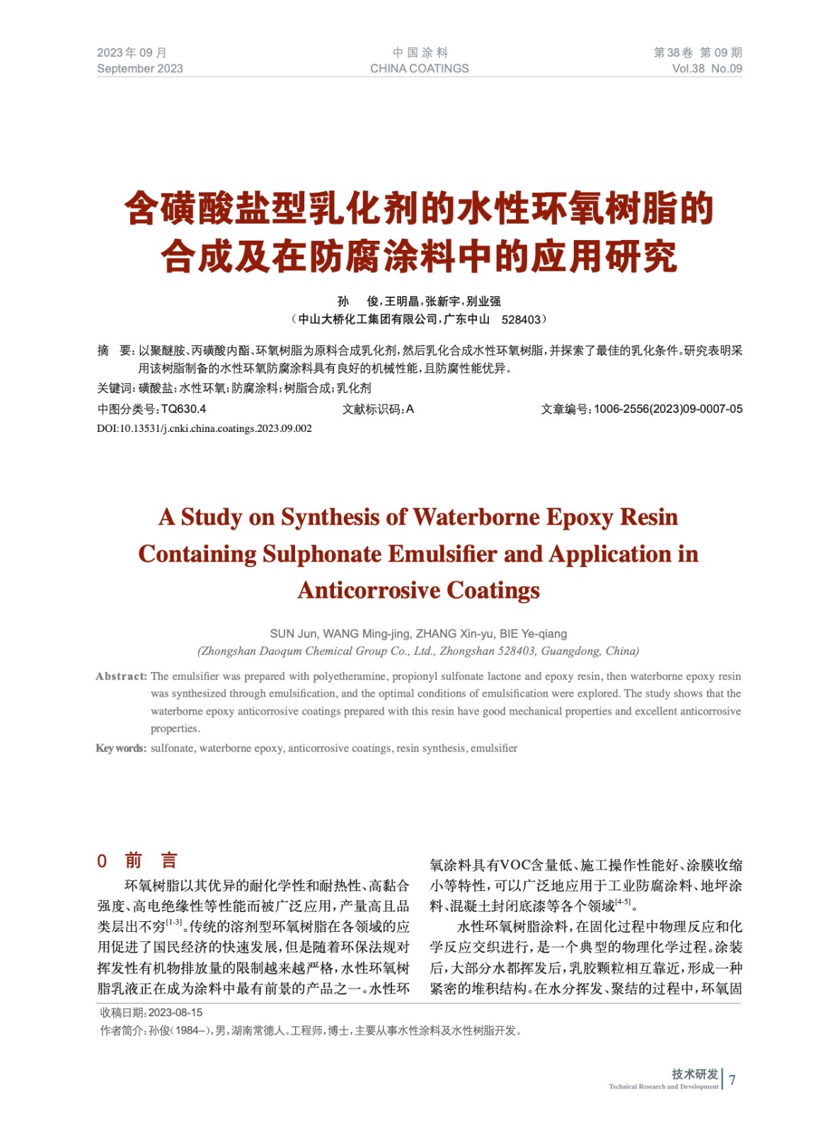 含磺酸鹽型乳化劑的水性環(huán)氧樹脂的合成及在防腐涂料中的應(yīng)用研究