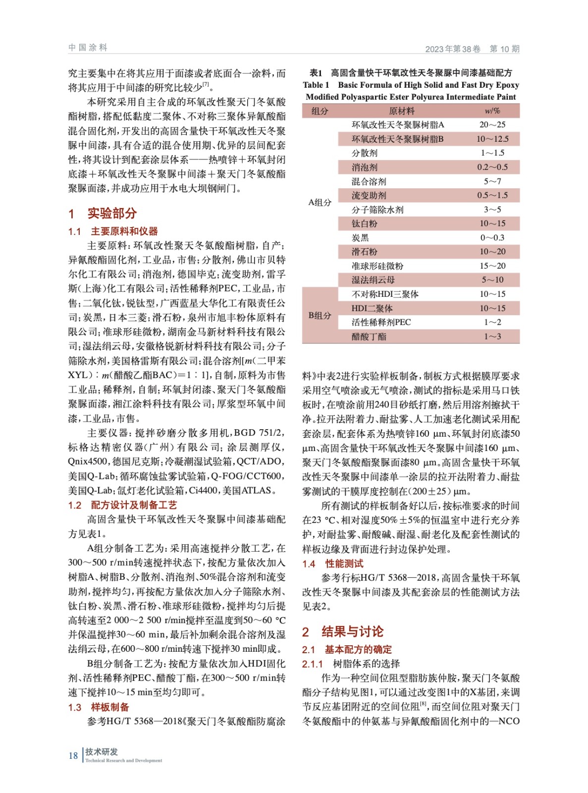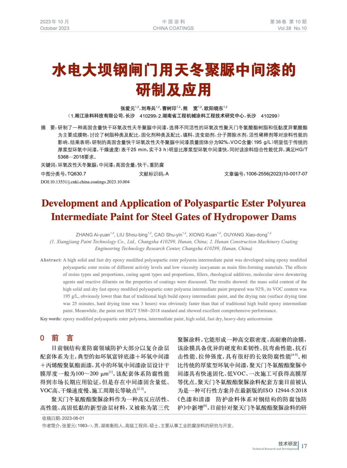 水電大壩鋼閘門用天冬聚脲中間漆的研制及應用