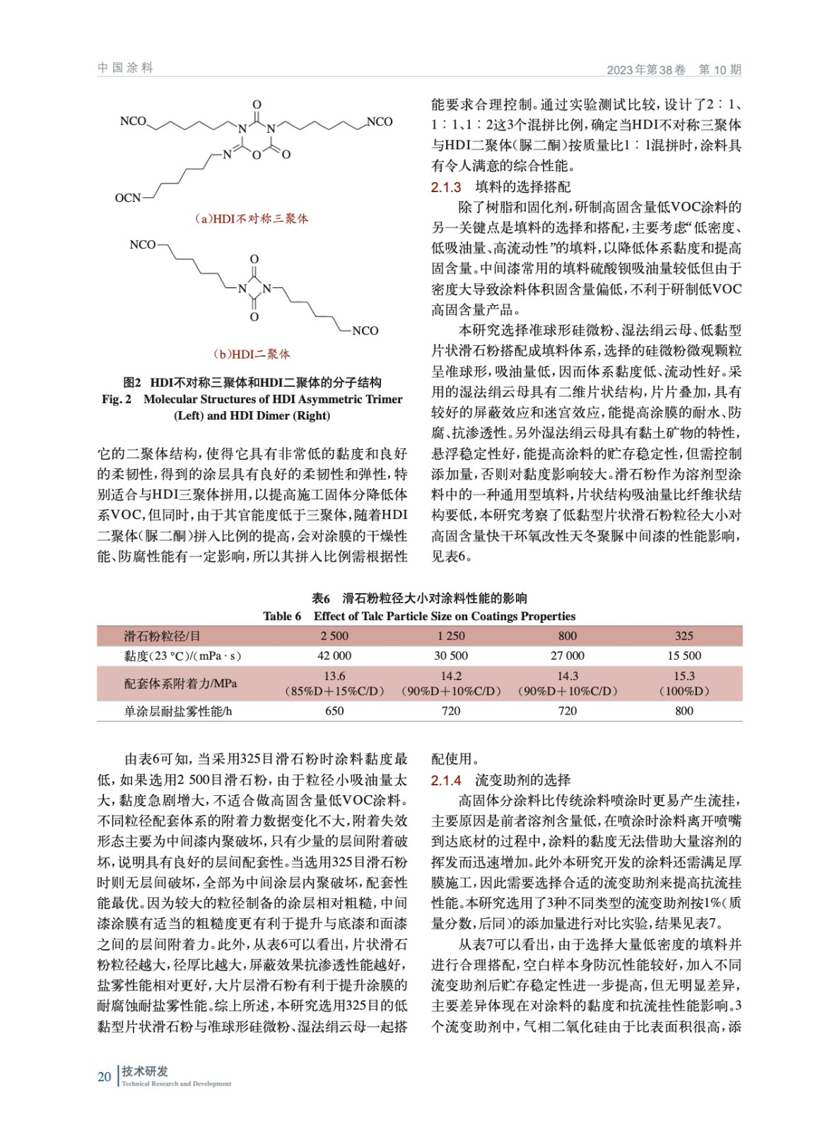 摘要:研制了一種高固含量快干環氧改性天冬聚脲中間漆,選擇不同活性的環氧改性聚天門冬氨酸酯樹脂和低黏度異氰酸酯為主要成膜物,討論了樹脂種類及配比、固化劑種類及配比、填料、流變助劑、分子篩除水劑、活性稀釋劑等對涂料性能的影響。結果表明:研制的高固含量快干環氧改性天冬聚脲中間漆質量固體分為92%,VOC含量(195 g/L)明顯低于傳統的厚漿型環氧中間漆,干燥速度(表干25 min,實干3 h)明顯比厚漿型環氧中間漆快,同時該涂料綜合性能優異,滿足HG/T 5368—2018要求。