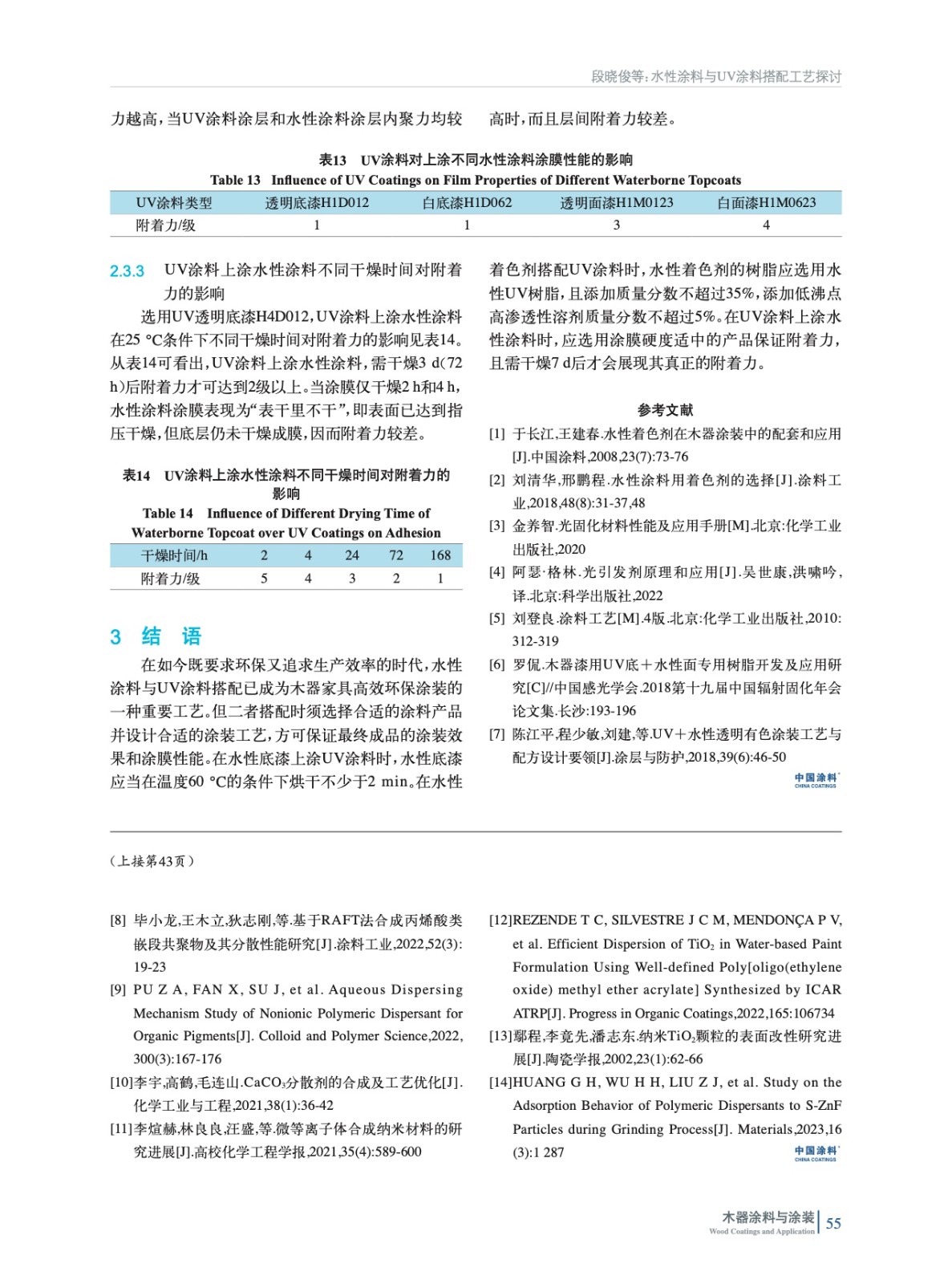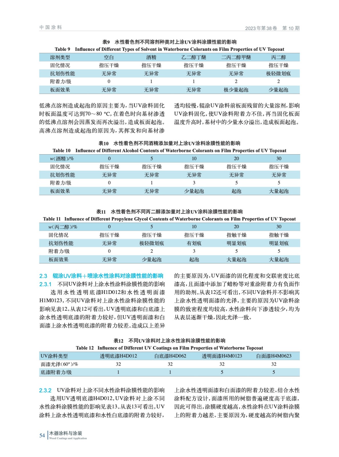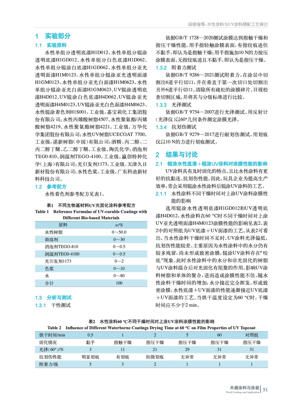 摘要:設(shè)計(jì)了水性底漆+上涂UV涂料、水性涂料著色劑+上涂UV涂料和UV涂料+上涂水性涂料3種涂裝工藝,探明了不同水性涂料、水性涂料中不同成分和不同過(guò)程控制參數(shù)對(duì)涂膜光澤、抗劃傷、起泡情況、附著力等性能的影響規(guī)律。