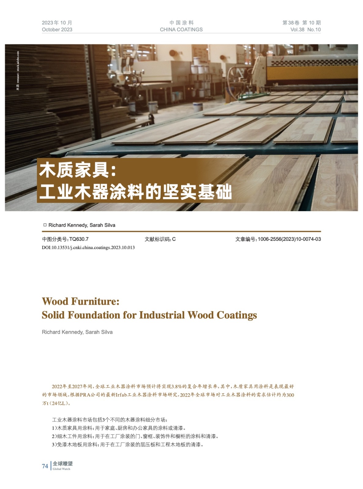 摘要:2022年至2027年間,全球工業木器涂料市場預計將實現3.8%的復合年增長率,其中,木質家具用涂料是表現最好的市場領域。根據PRA公司的最新Irfab工業木器涂料市場研究,2022年全球市場對工業木器涂料的需求估計約為300萬t(24億L)。