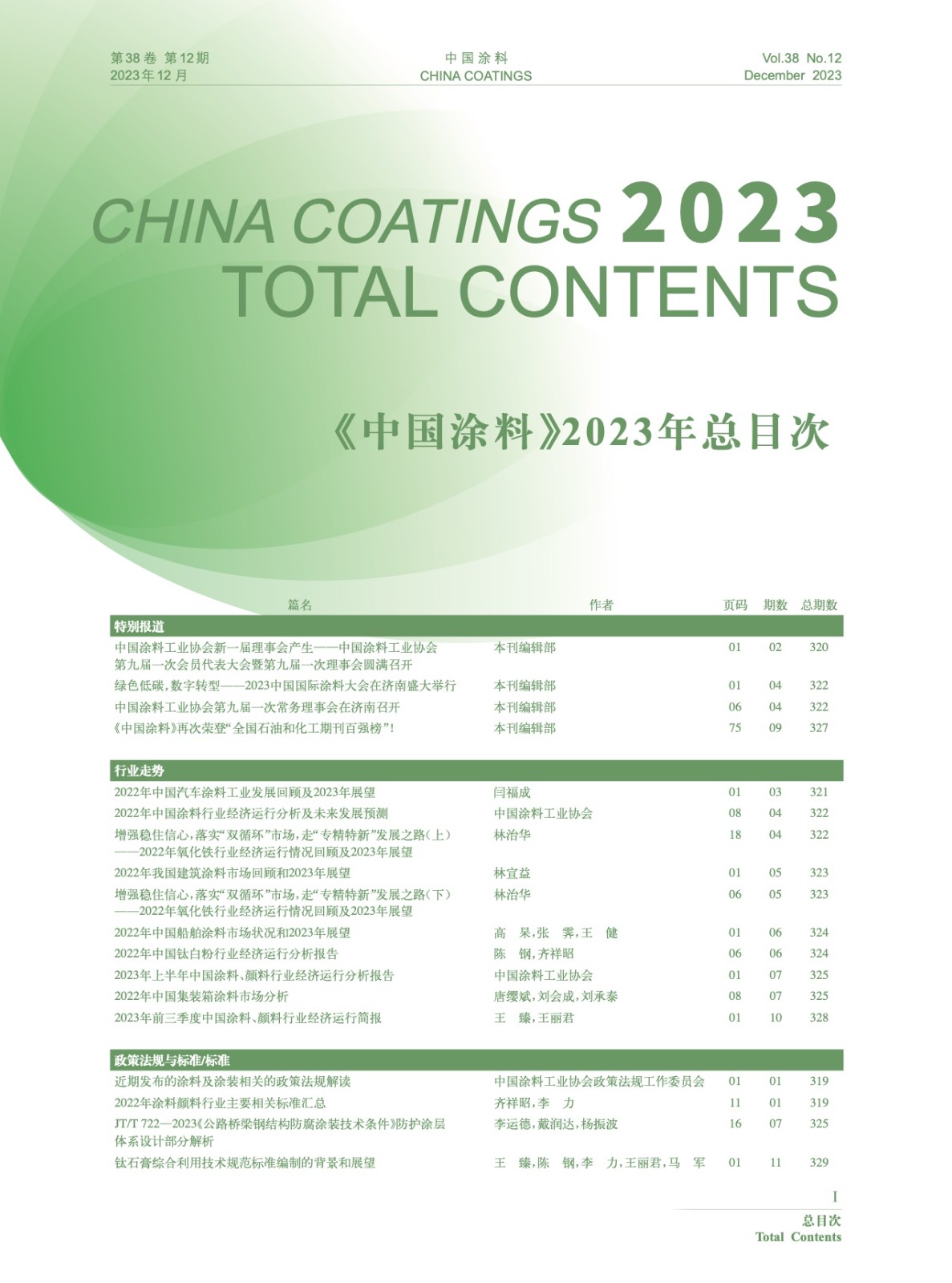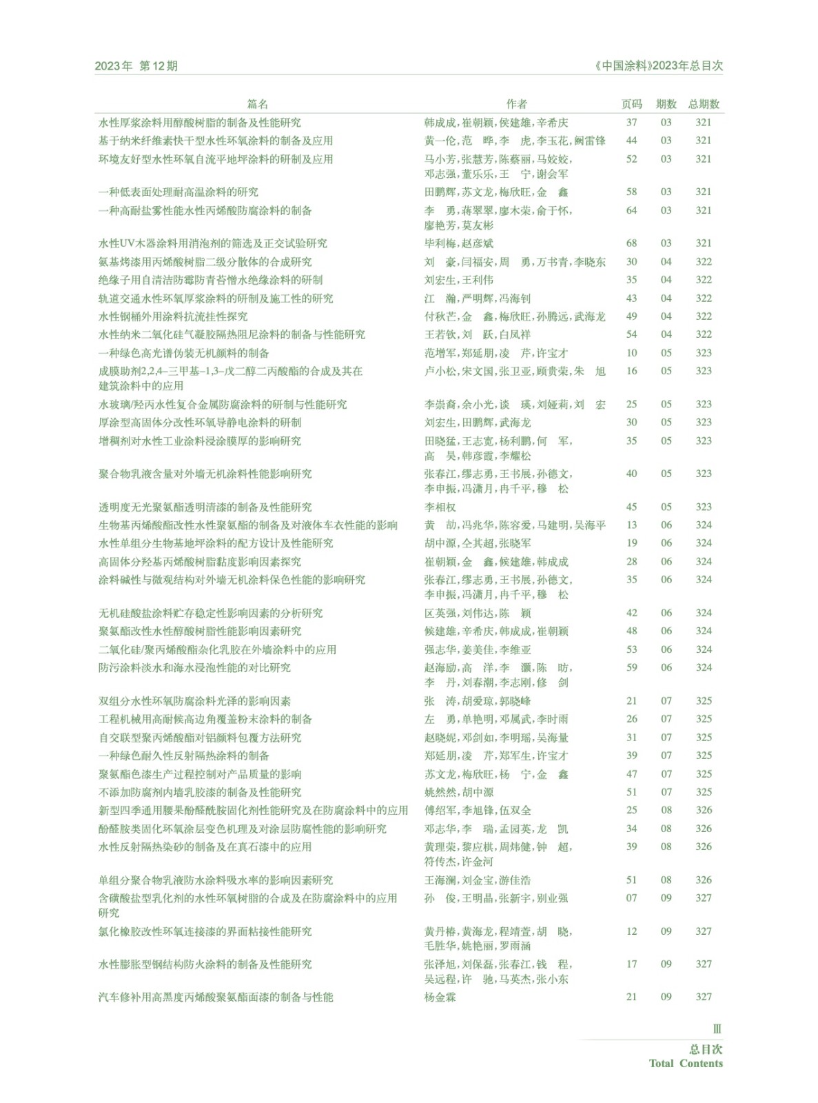 《中國涂料》2023年總目次