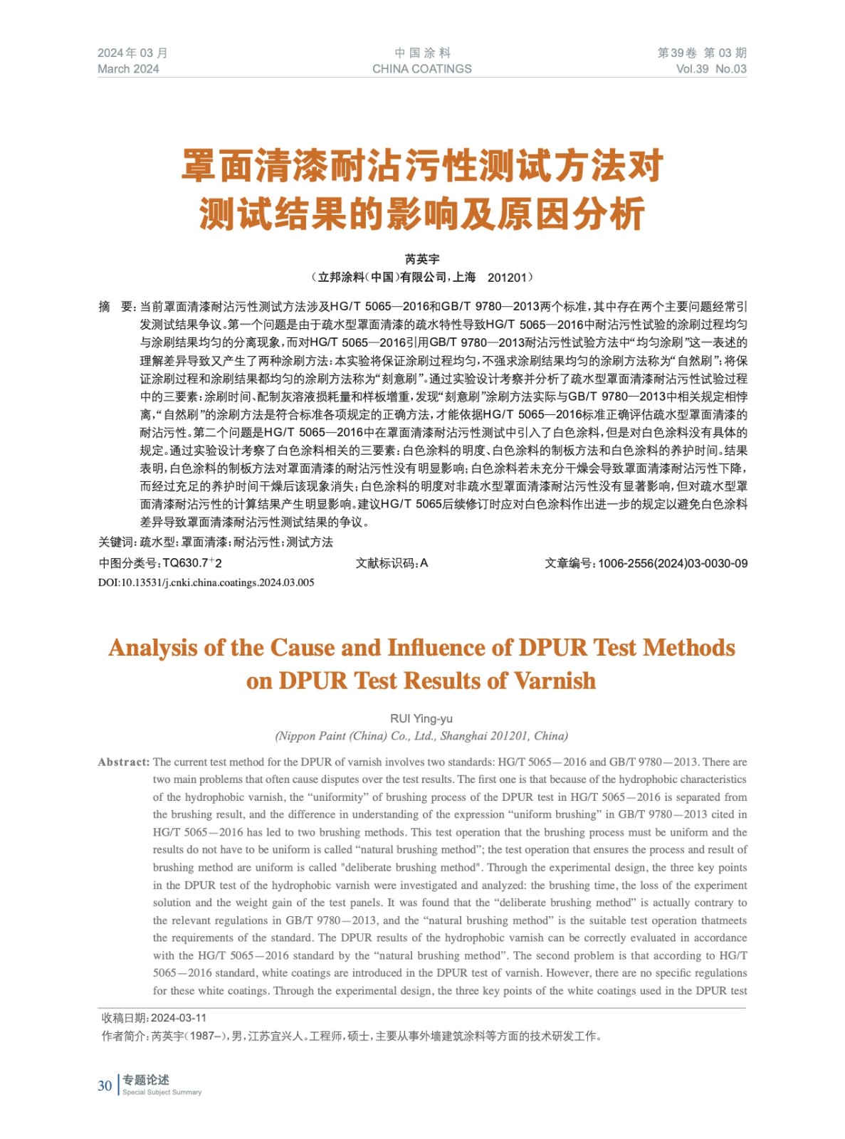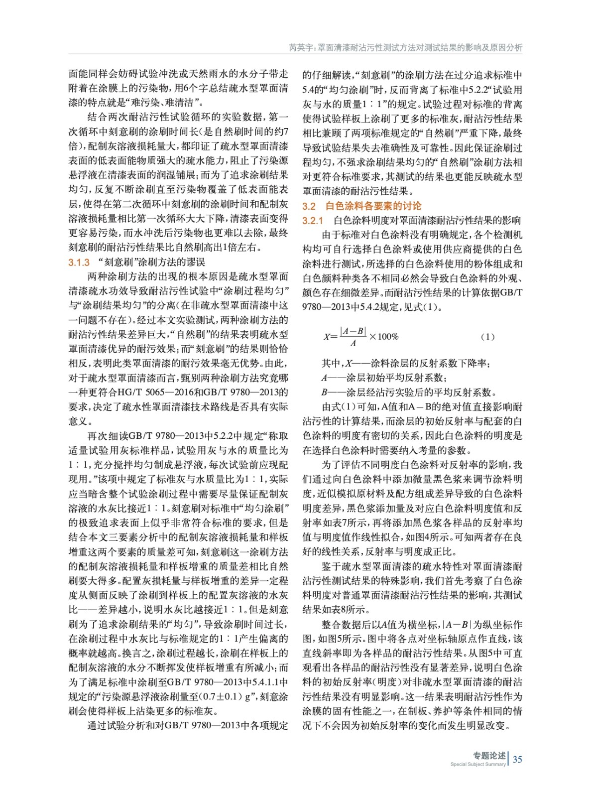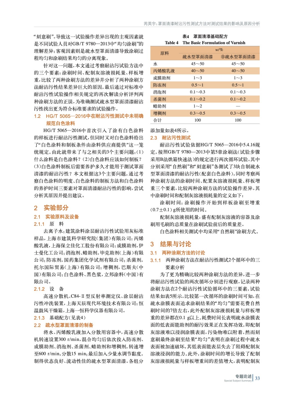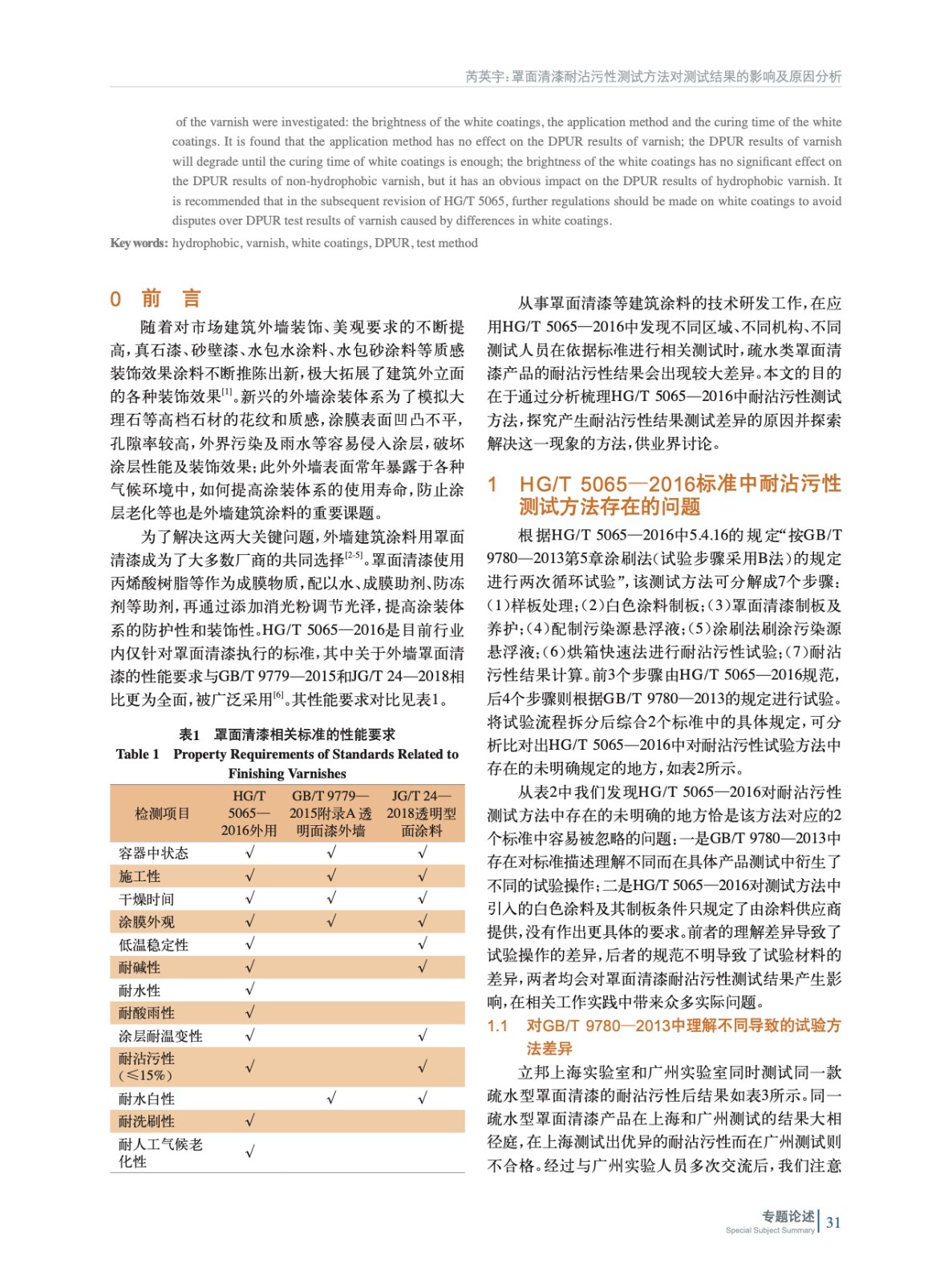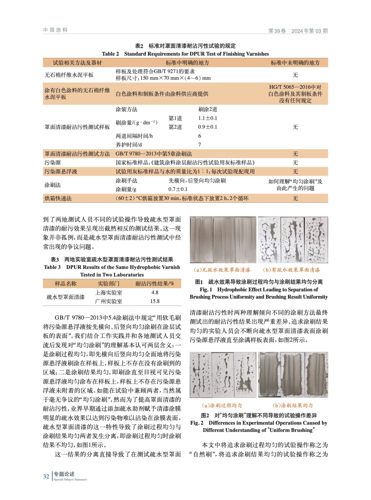 當前罩面清漆耐沾污性測試方法涉及HG/T 5065—2016和GB/T 9780—2013兩個標準,其中存在兩個主要問題經常引發測試結果爭議。實驗對兩個標準存在的問題及印發的爭議進行了測試,并給出了解決方案。